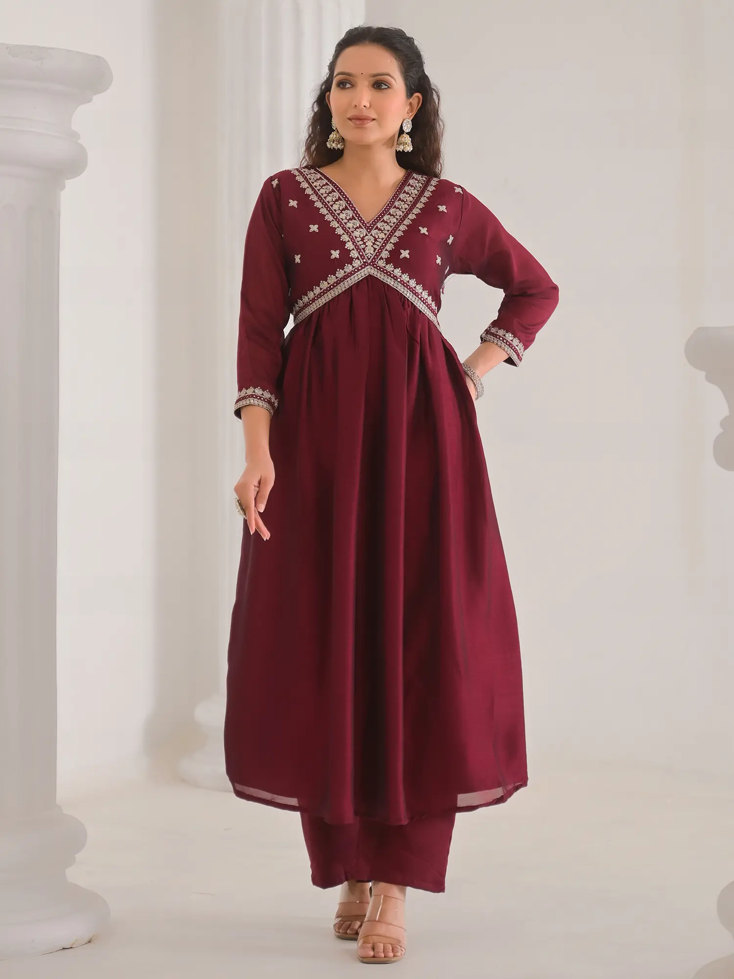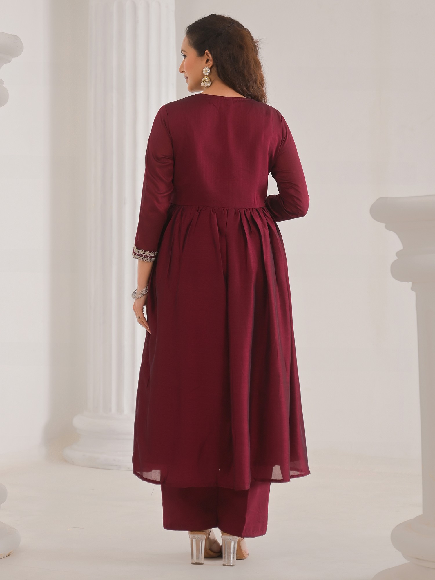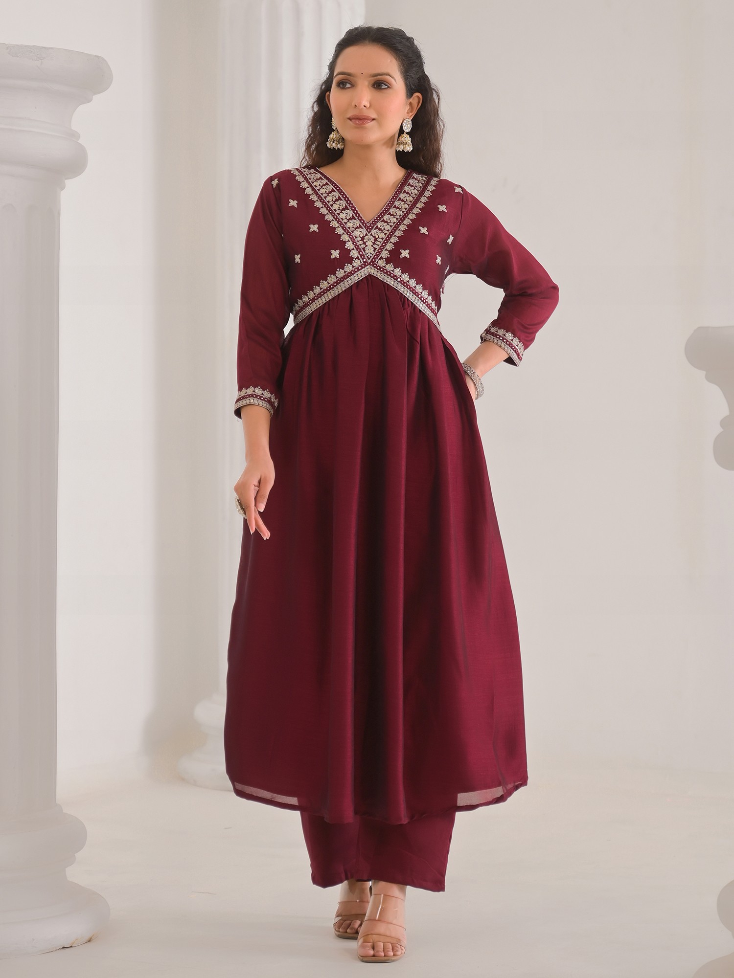 Silk Embroidery Work A-Line Party Wear Anarkali Kurta Set With Matching Dupatta