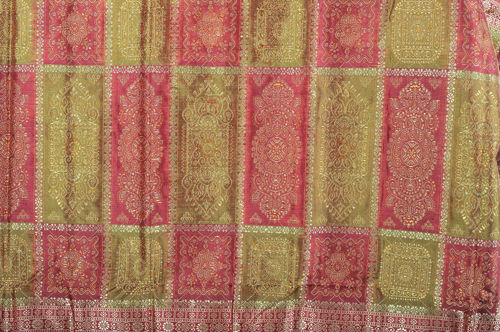 Dark-Cheddar Bomkai Handloom Sari from Orissa with Box Design on Pallu and Temple Border