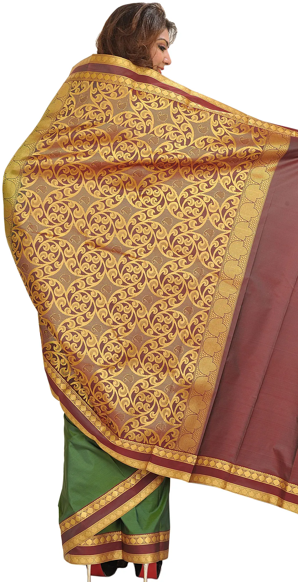 Bronze-Brown Sari from Bangalore with Woven Paisleys and Brocaded Aanchal