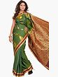 Vineyard-Green Sari from Bangalore with Woven Peacocks and Brocaded Pallu