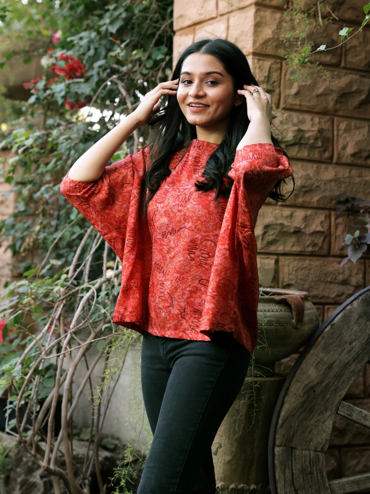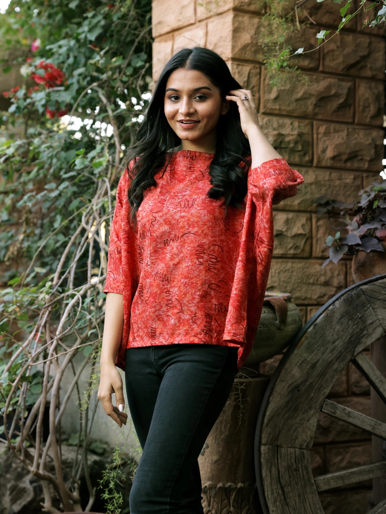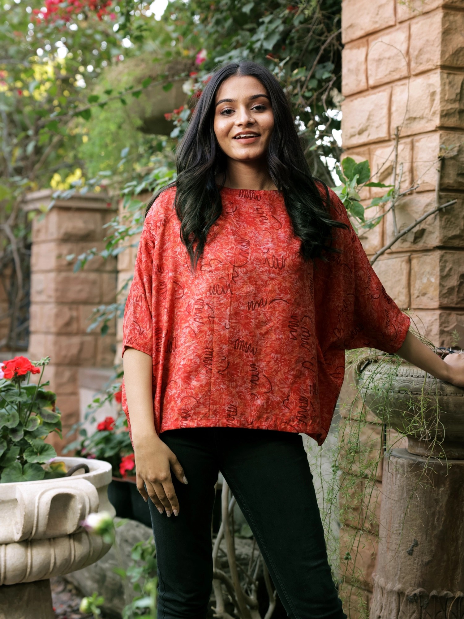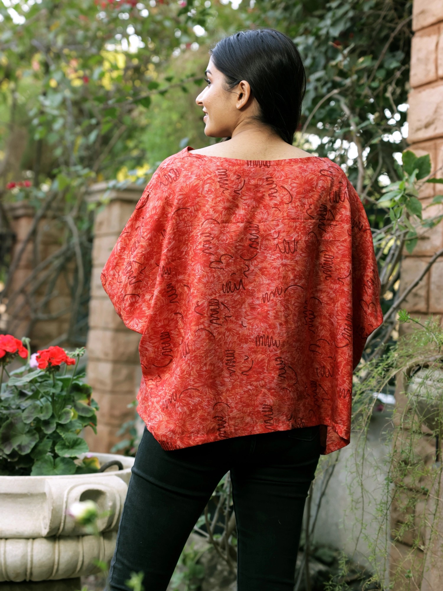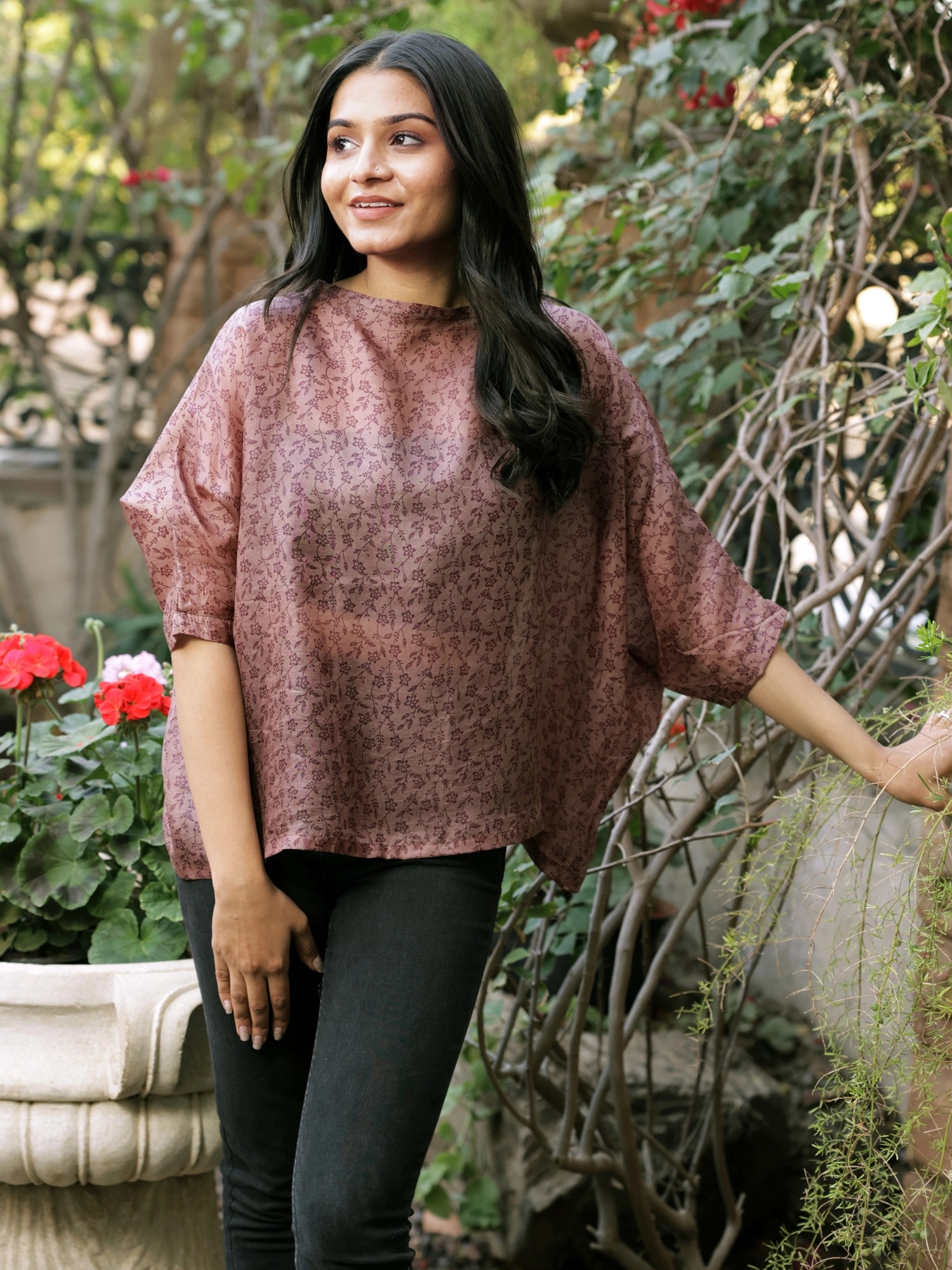 Let this summer season be a time of style and comfort with this chic pure silk baggy top from Jodhpur. Crafted from lux silk fabric, the top has a vintage appeal, elevated by classic Indian patterns all over. Blending rich details with breathable tailoring, the silk top will make your casual looks a statement of effortless luxury.