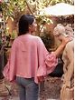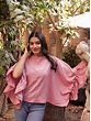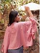 The regal feel of pure silk can be added to your casual wardrobe with this classy designer top from Jodhpur. Decorated with traditional Indian patterns all over, the pure silk top has a trim tailoring, with voluminous ruffled bell sleeves that add a stylish detail to it.