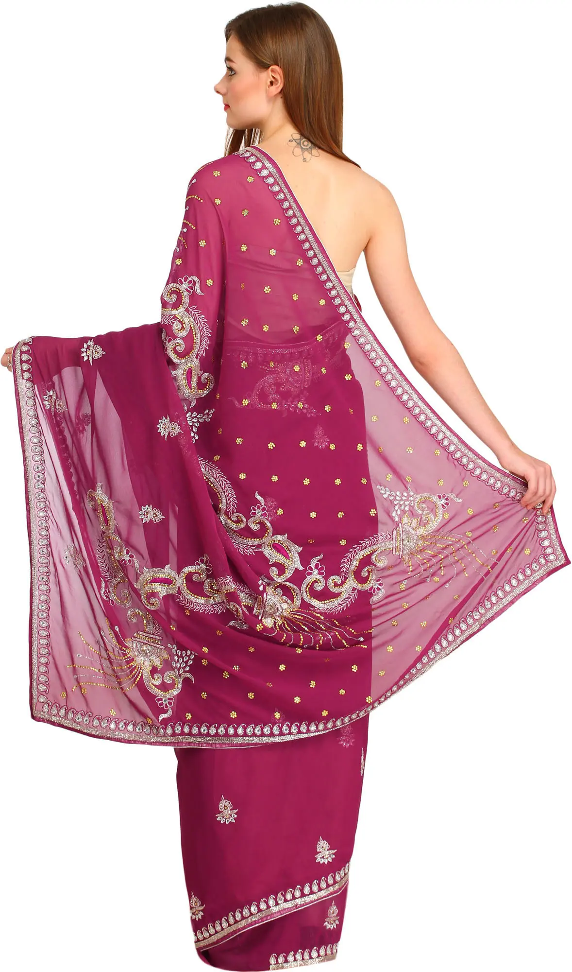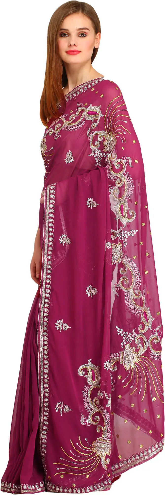 Violet-Quartz Designer Wedding Sari with Embroidered-Beads and Stone-work
