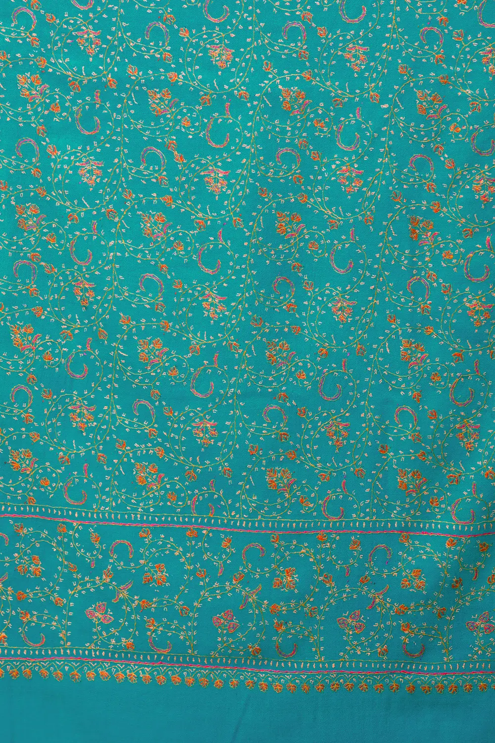Shawl from Kashmir with Sozni Hand Embroidery on Border