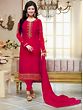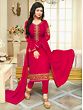 Fuchsia and Green Anarkali Chudidar Kameez Suit with Embroidered Flowers