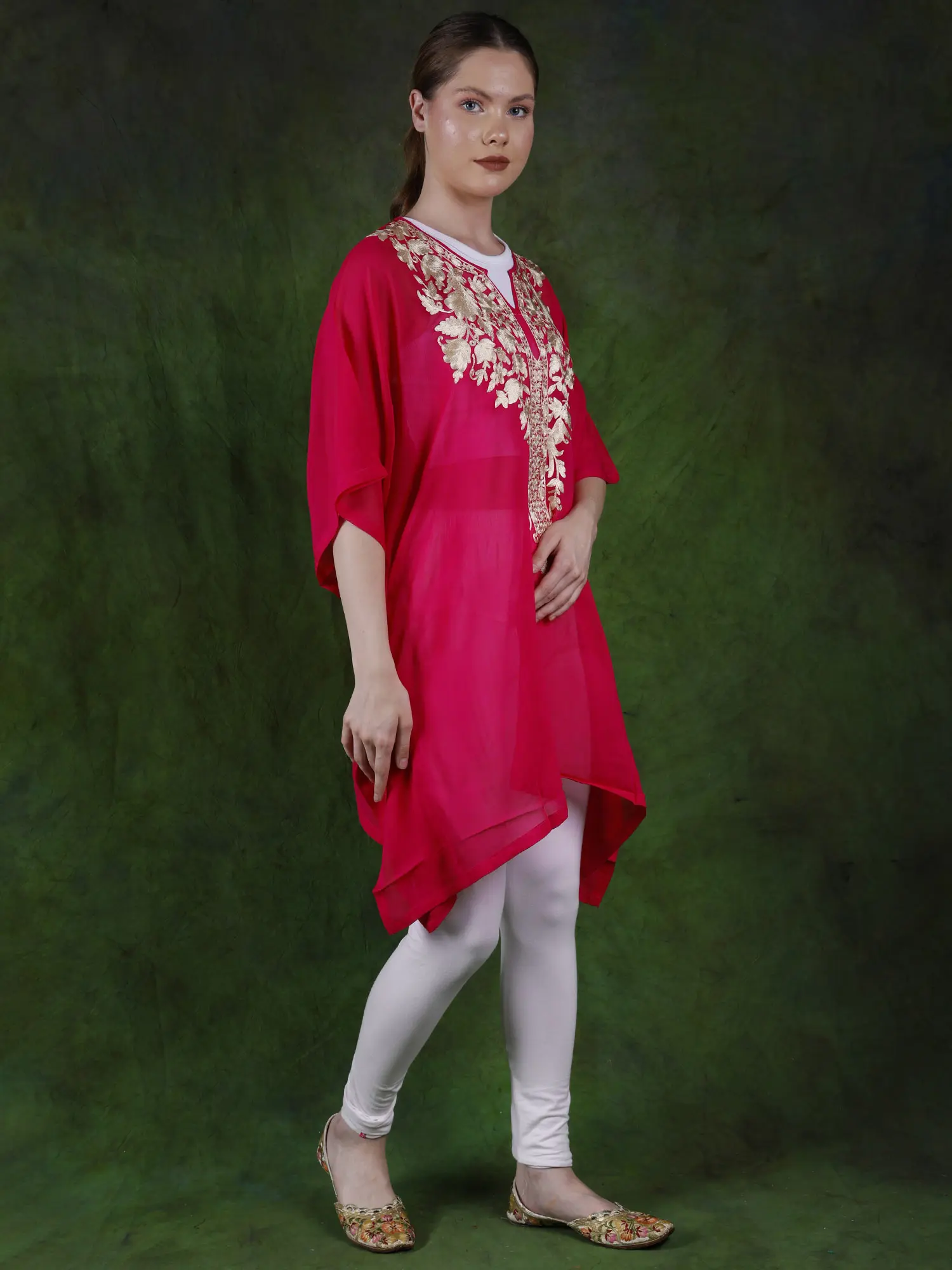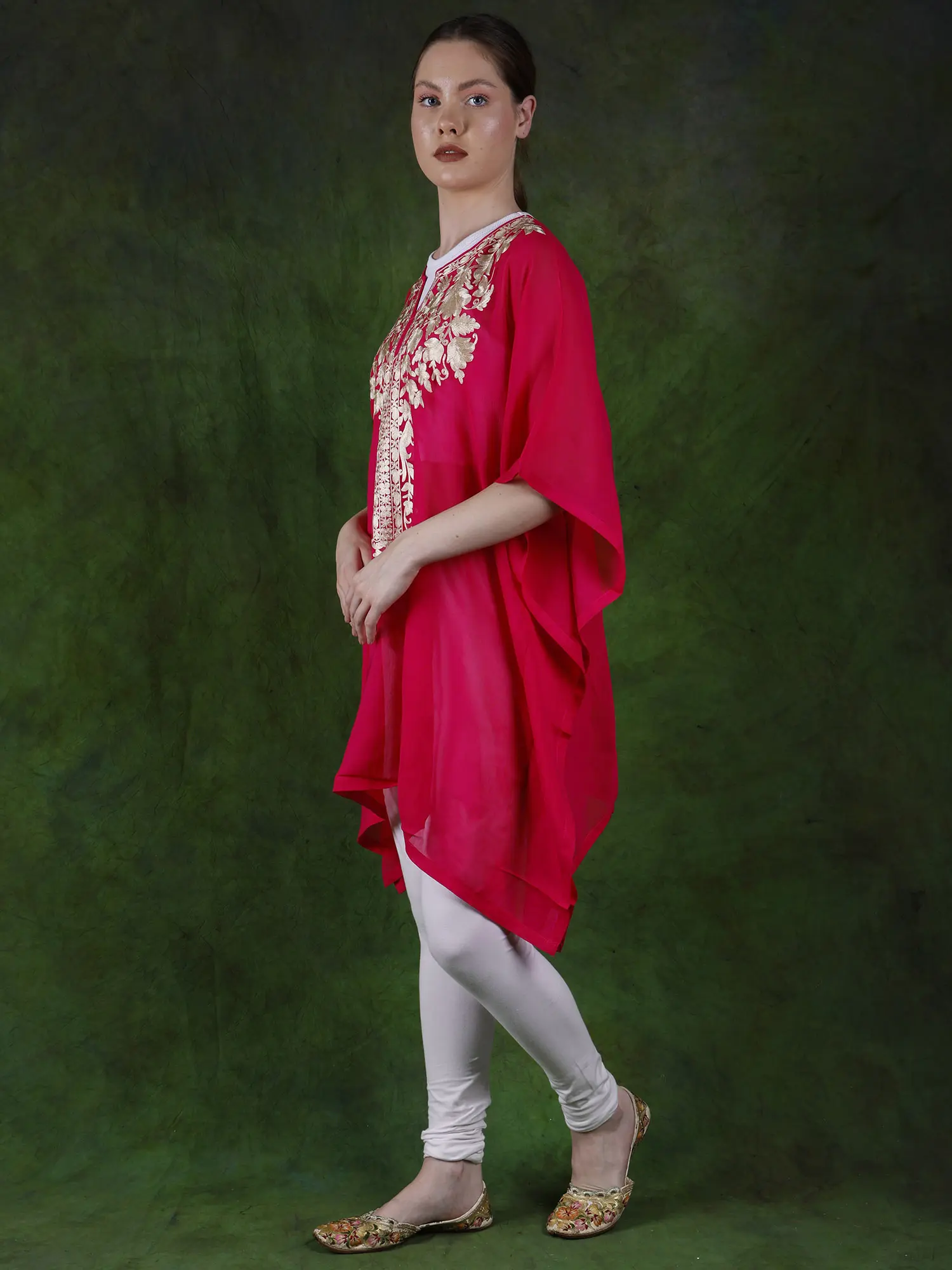 Layer up for the winter in style with this gorgeous pink embroidered Kaftan.