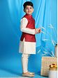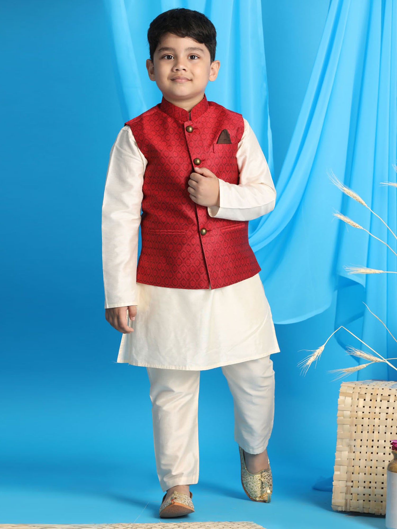 Viscose Cream Kurta Pajama With Silk Blend Ogee Pattern Modi Jacket