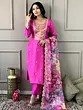 Pink-Red Anarkali Style Viscose Chanderi Elegant Wedding Wear Suit With Floral Print Dupatta