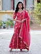 Debian-Red Designer Georgette Embroidery And Sequins Work Straight Kurta With Palazzo And Dupatta