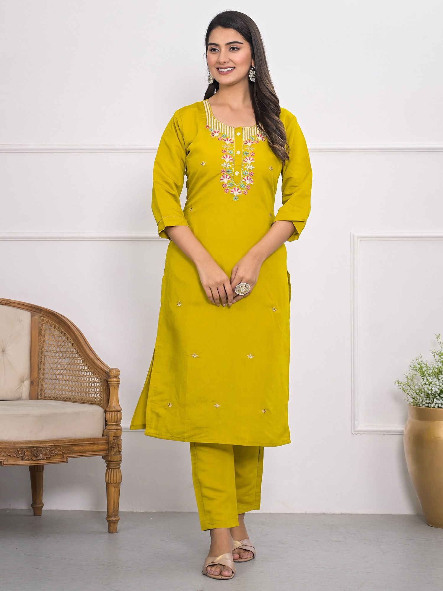 This ready-to-wear kurta set includes everything you need to create a stunning and cohesive look. The straight-cut pants offer a contemporary twist, while maintaining a classic and timeless appeal. The floral dupatta elevates the outfit and adds a graceful, feminine touch. This is a complete package that will leave you feeling confident and radiant.