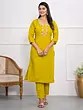 Step into the spotlight with this stunning kurta set, a harmonious blend of tradition and contemporary style. The vibrant hue of the kurta immediately commands attention, radiating warmth and sophistication. The fabric drapes beautifully, creating a flattering silhouette that is both comfortable and elegant. This is more than just an outfit; it's a statement. It whispers of festive gatherings, joyful celebrations, and unforgettable moments shared with loved ones.