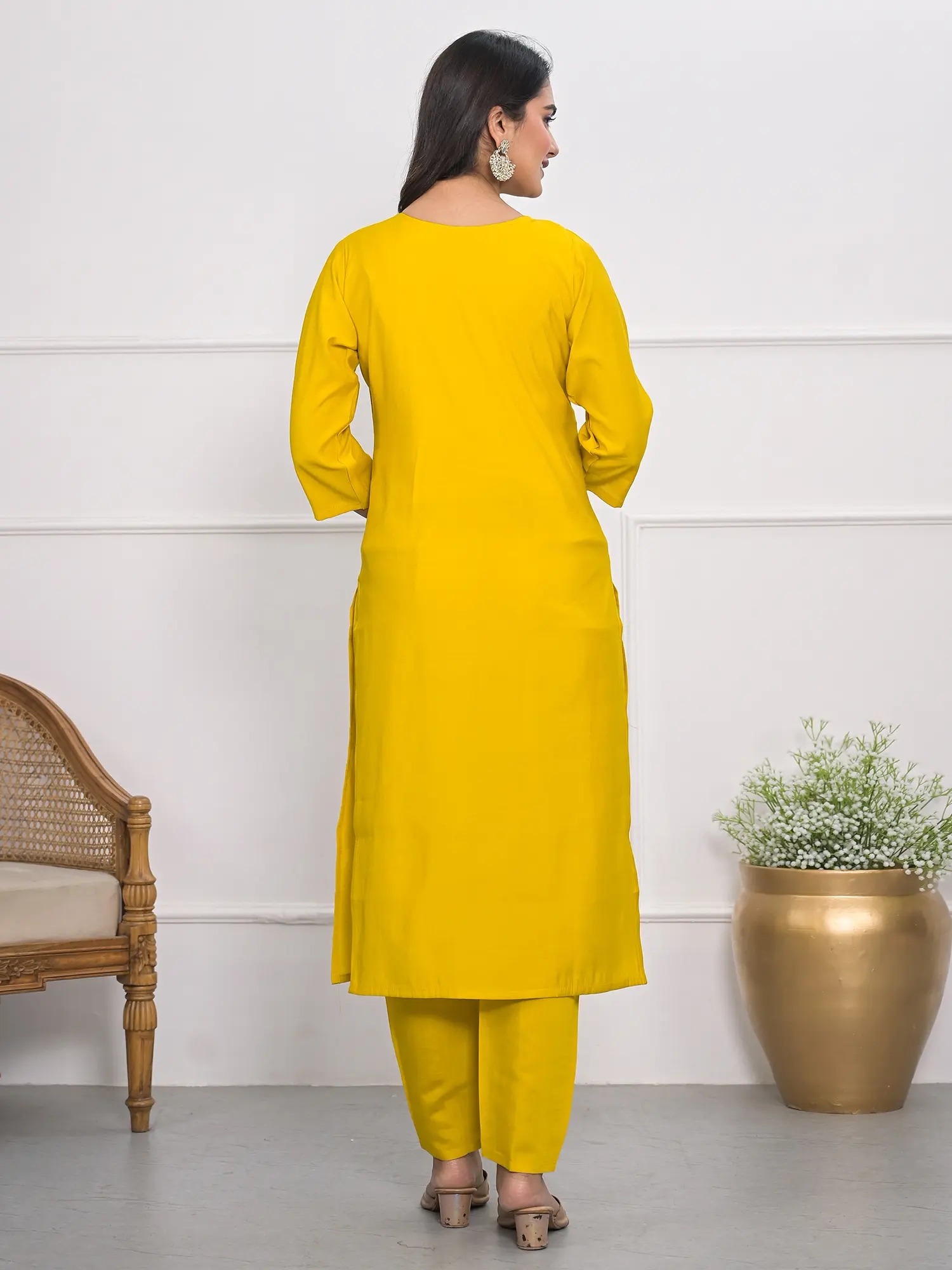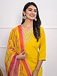 This set includes a straight-cut kurta, matching bottoms, and a stunning dupatta, providing a complete and effortlessly stylish outfit. The straight silhouette of the kurta flatters various body types, while the coordinated bottoms offer a comfortable and streamlined fit. The dupatta can be styled in multiple ways, allowing you to personalize your look and add your own unique flair.