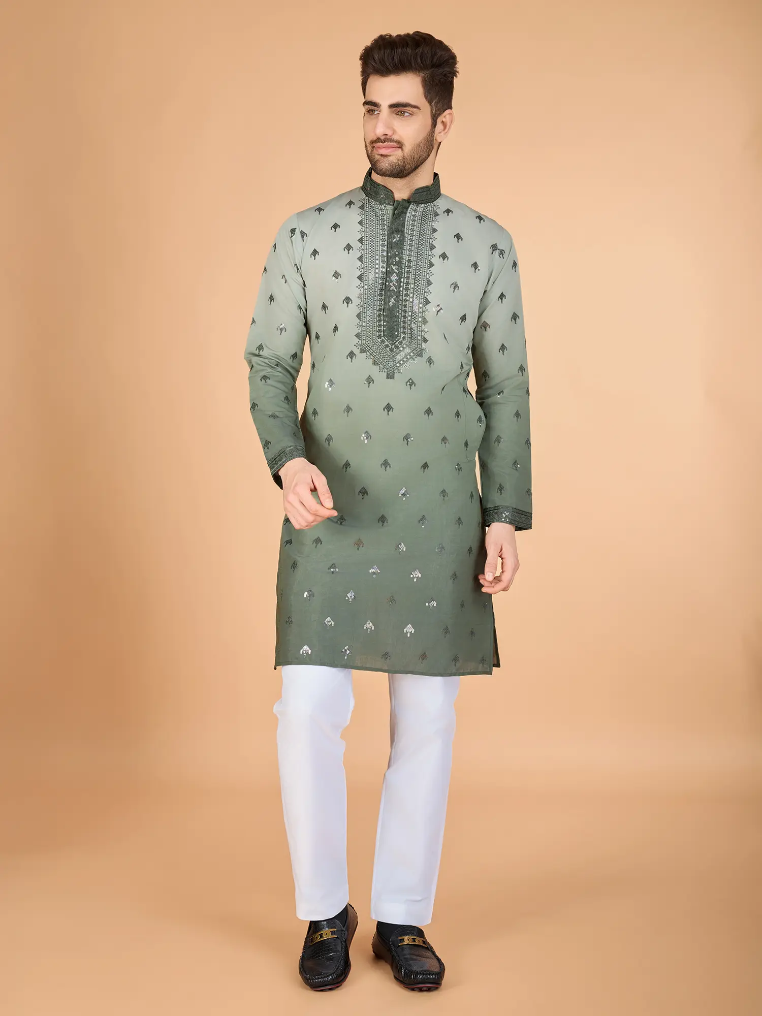 Wedding Kurta Pajama Set with All-Over Woven Floral Motifs in Self