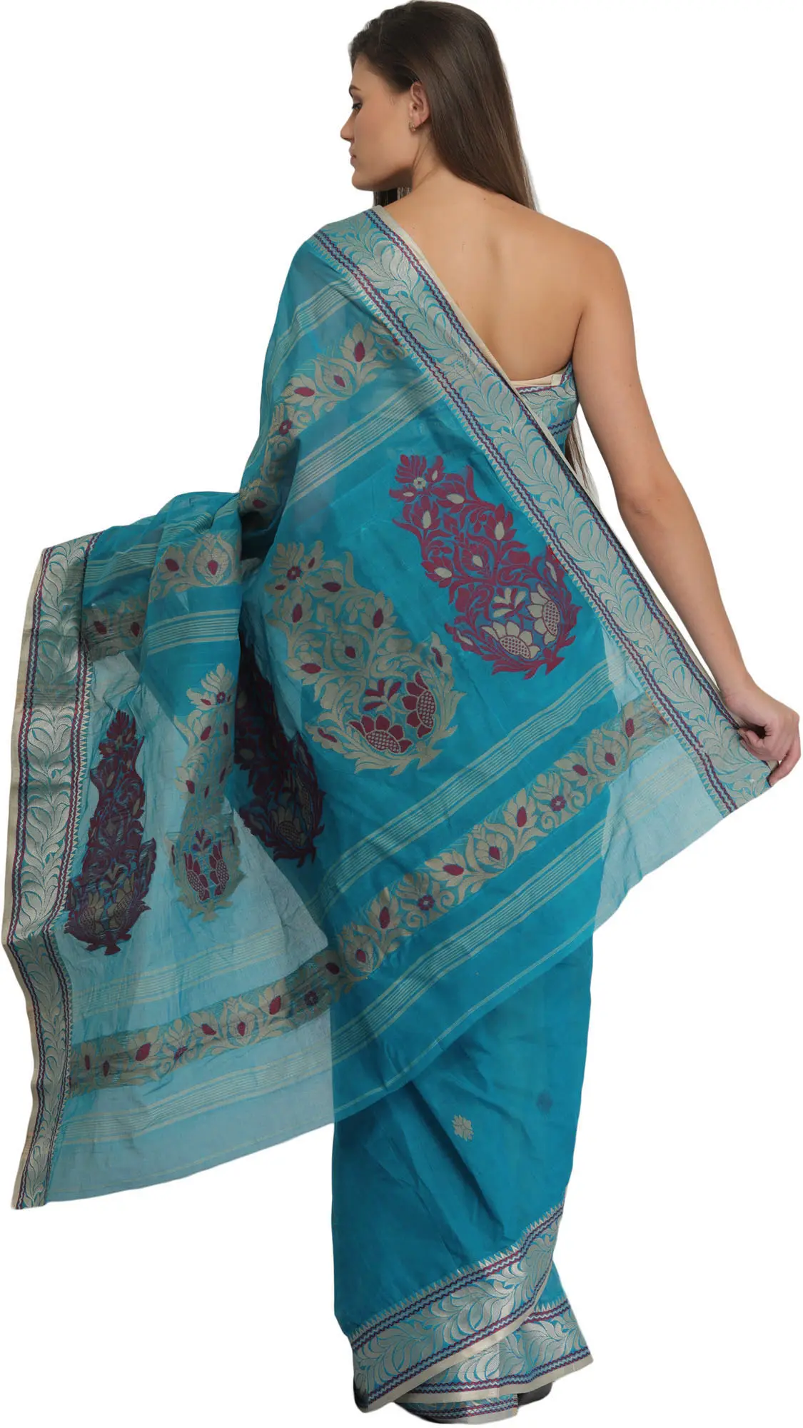 The pure cotton fabric ensures breathability and a soft touch against the skin, making this sari a pleasure to wear throughout the day or evening. Its lightweight nature allows for graceful draping, highlighting your silhouette with effortless style. This sari is a perfect choice for a variety of occasions, from festive celebrations and weddings to cultural events and even more formal gatherings. Its classic design transcends fleeting trends, ensuring it remains a cherished addition to your collection for years to come. –––––––––––––––––––