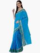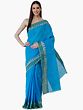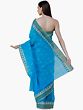 Vivid-Blue Tant Sari from Bengal with Woven Border and Stripes on Pallu