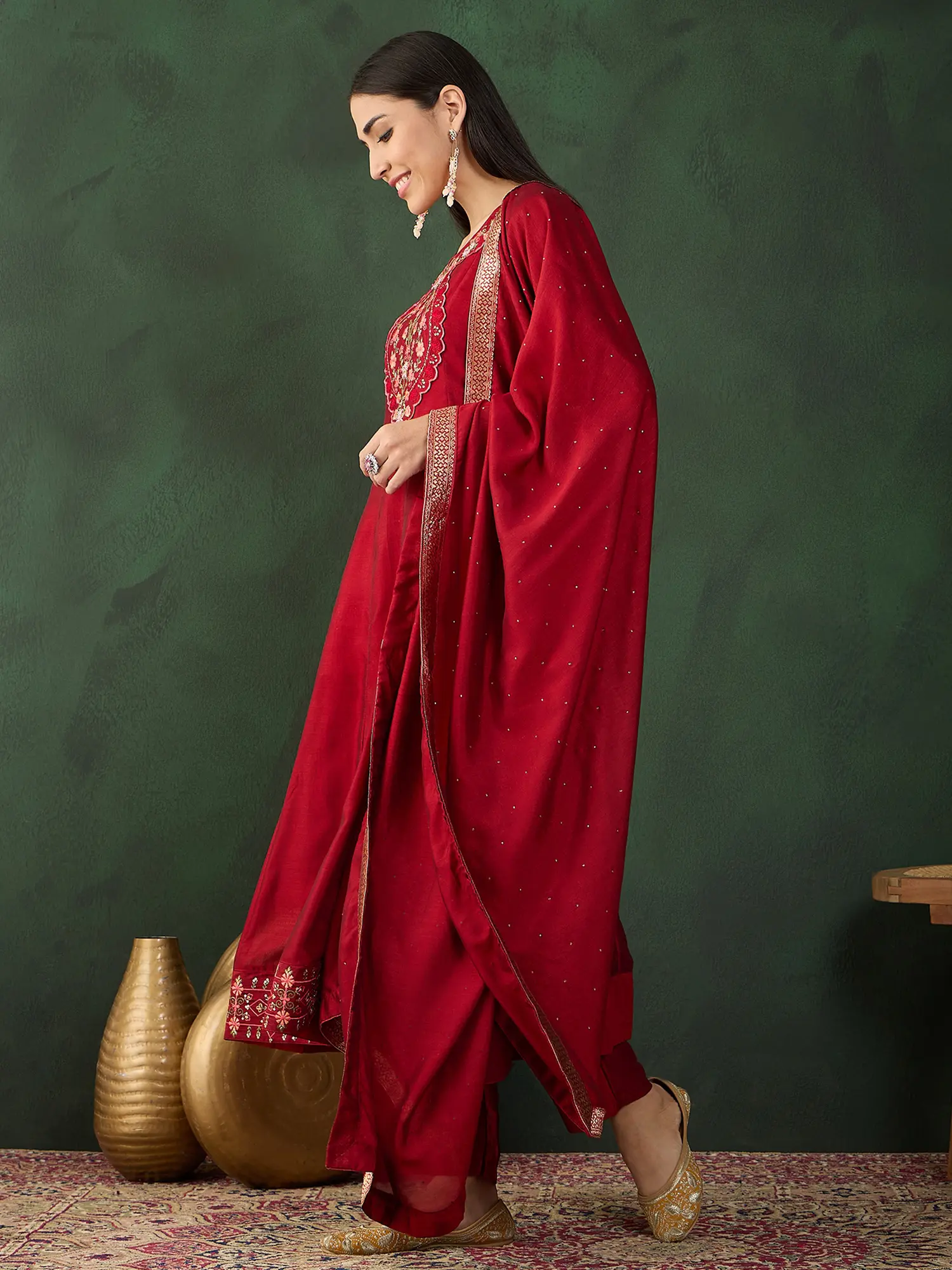 Three Piece Salwar Kameez Fabric with Matching Dupatta and Woven Paisley Motifs