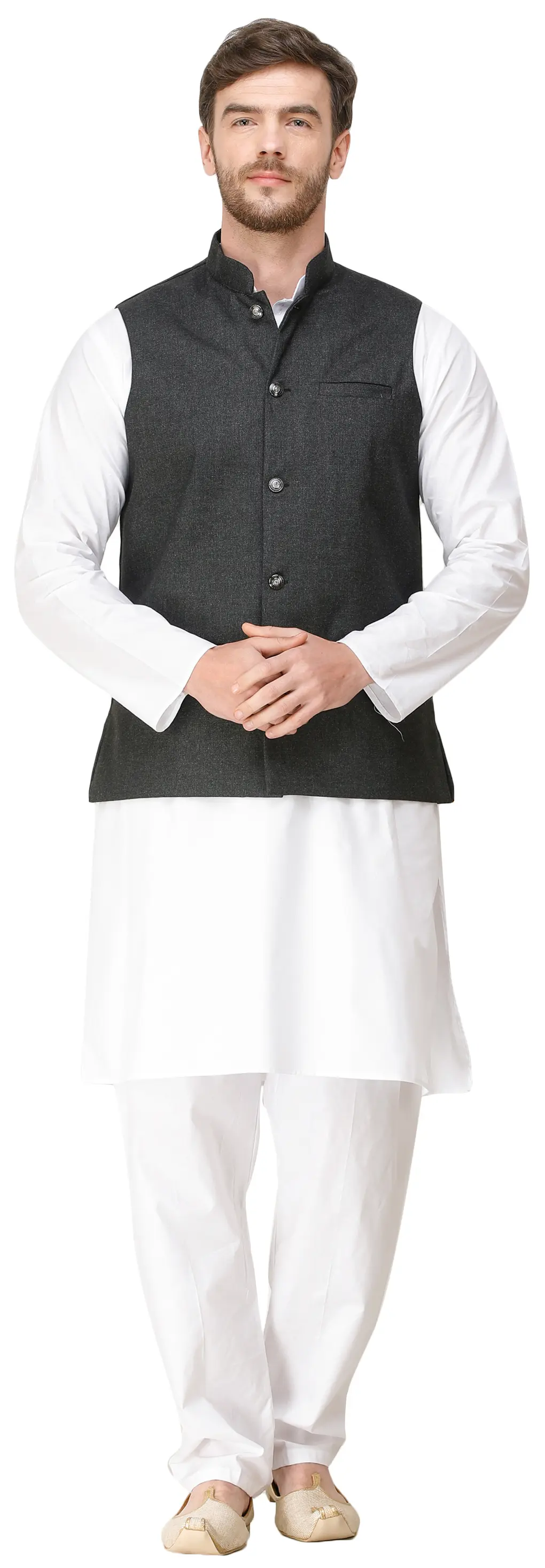 Add a touch of dapper flair to your ensemble with this waistcoat adorned with woven diagonal stripes. The intricate pattern not only showcases a sophisticated design but also provides a stylish dimension to your outfit. Front pockets give it a sleek look and more utility, making it a garment that works well for a variety of settings. Elevate your formal or semi-formal look with this waistcoat, effortlessly combining classic charm with modern style.