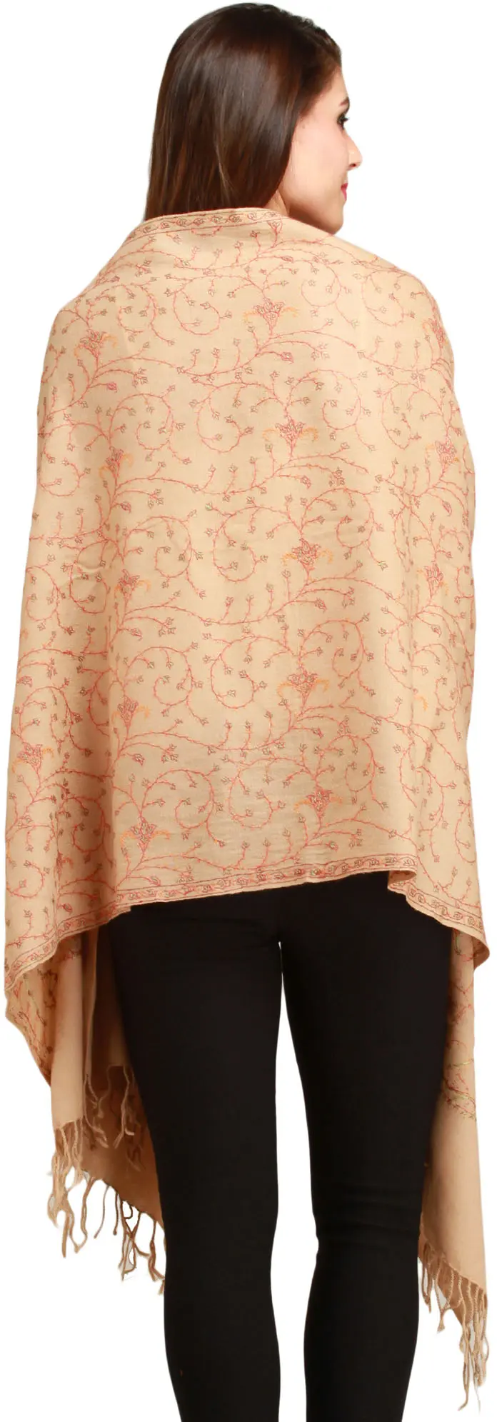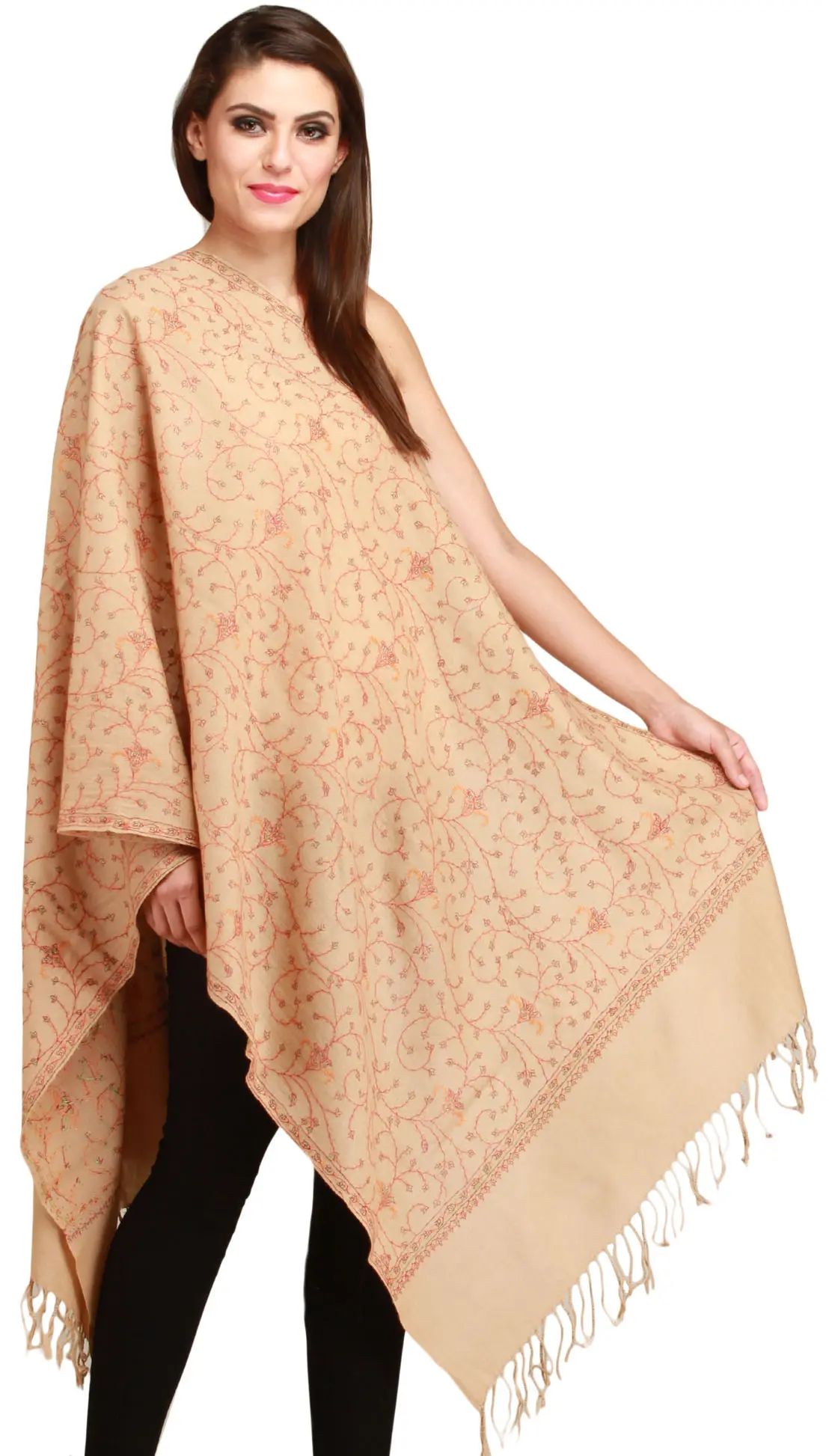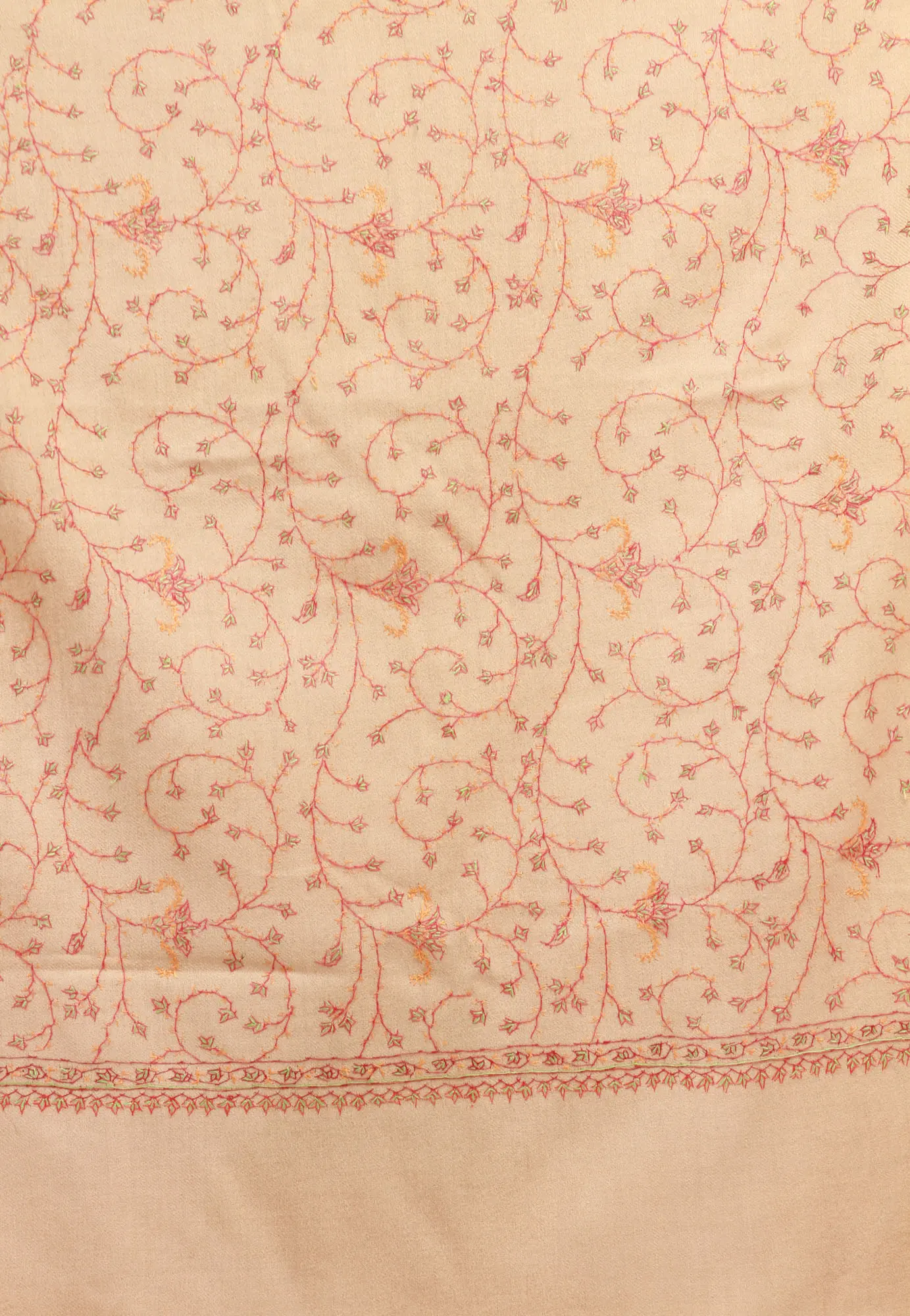 Pure Tusha Shawl from Kashmir with All-Over Needle Embroidery by Hand