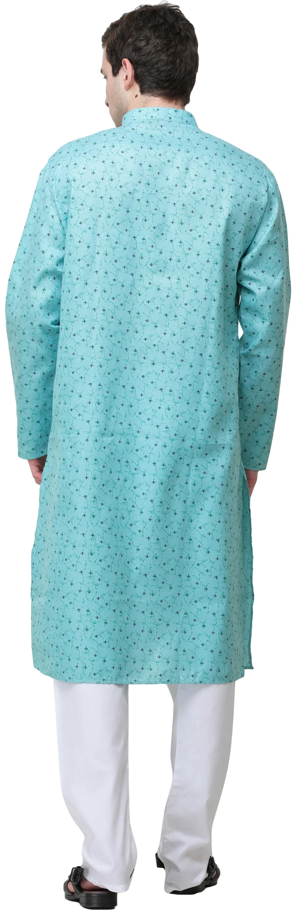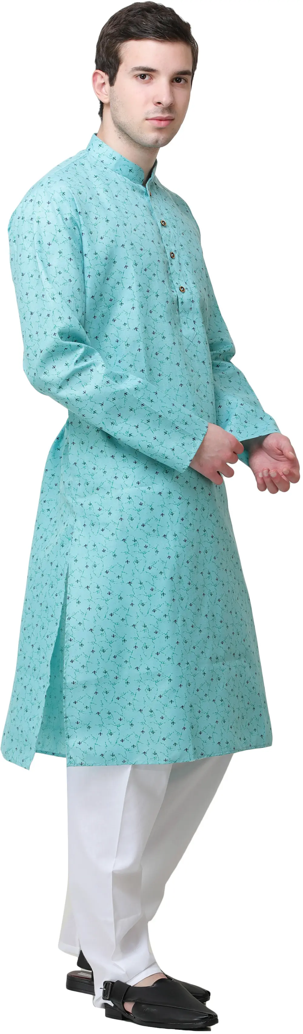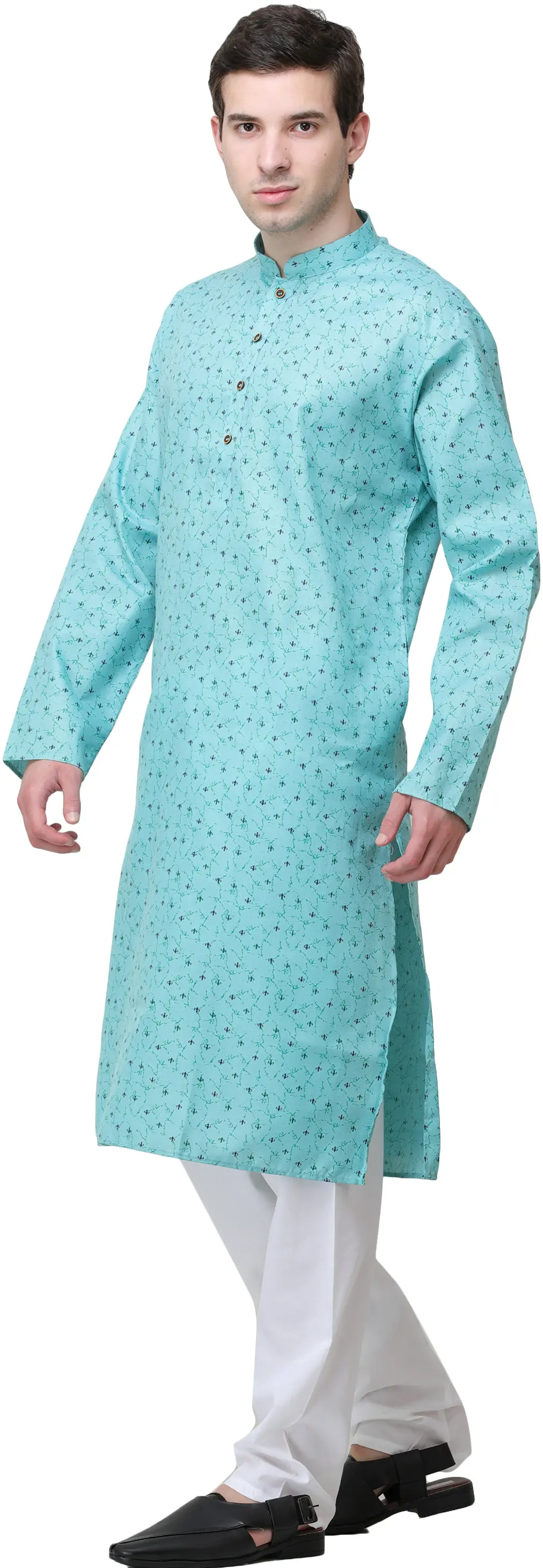 Effortless Style: The Aqua Printed Kurta Pajama Set
