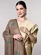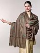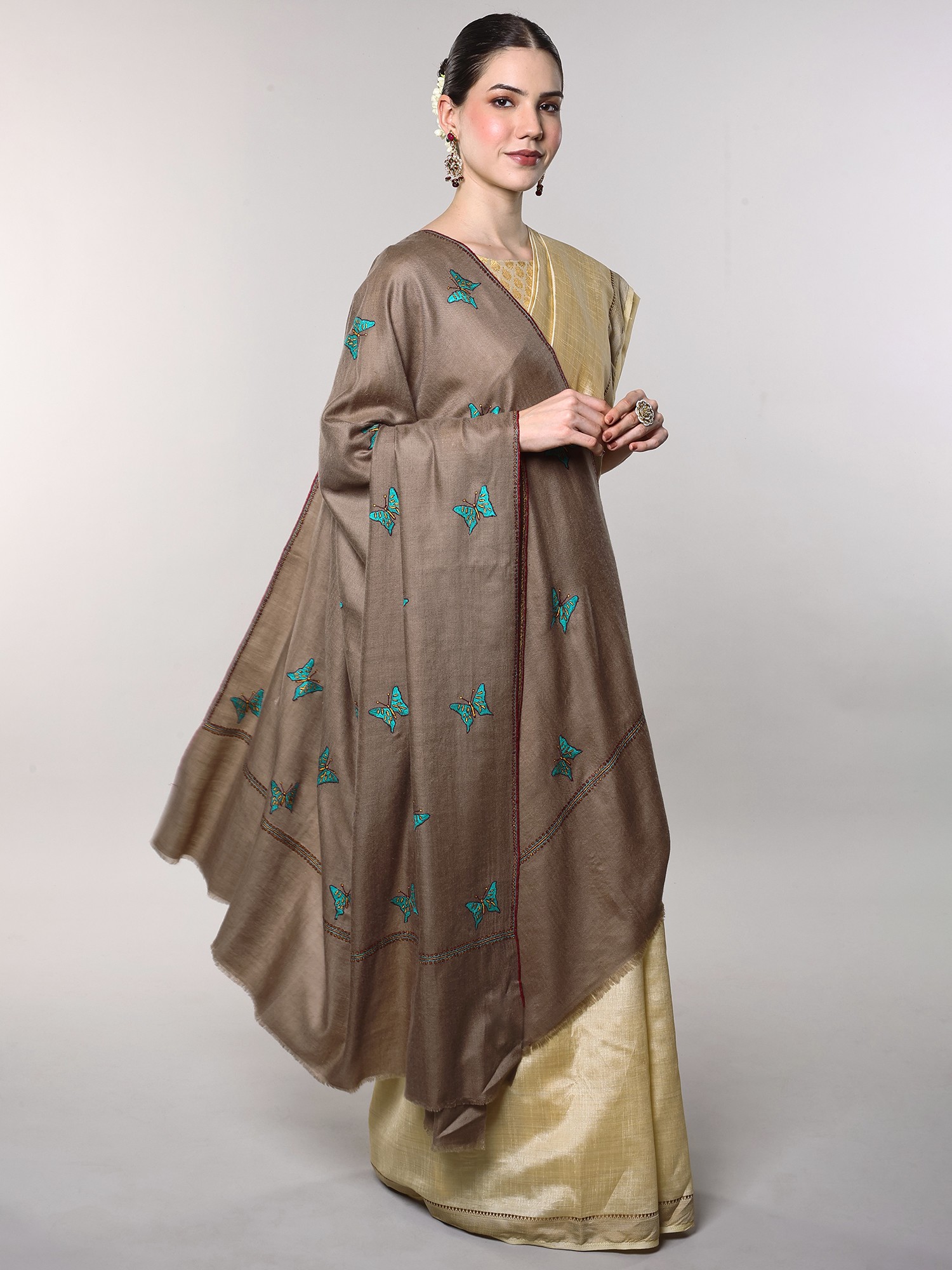 Weathered-Teak Pure Pashmina Shawl from Kashmir with Sozni Hand-Embroidered Butterflies