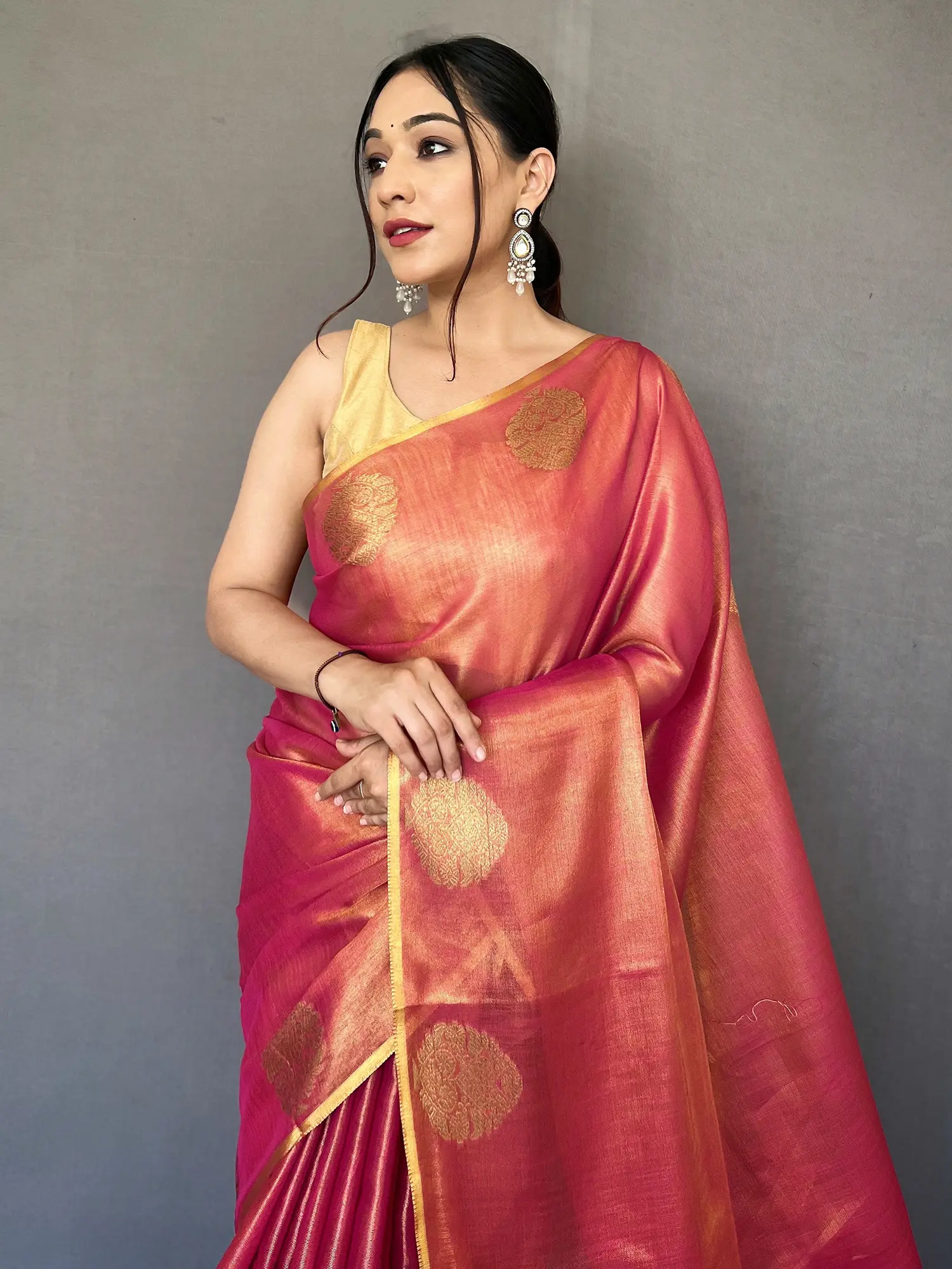Traditional Banarasi Saree with Woven Bootis and Zari Weave on Pallu