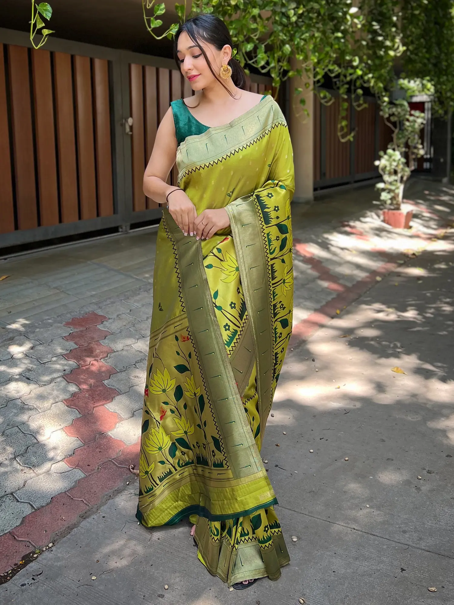 The dedication to quality is evident in every thread of this saree. The silk fabric is chosen for its sheen and durability, ensuring that the saree retains its beauty over time. The printing is of the highest standard, ensuring that the colors remain vibrant and the patterns sharp. This is more than just a garment; it's a piece of art, meticulously crafted to celebrate tradition and elevate personal style.