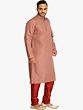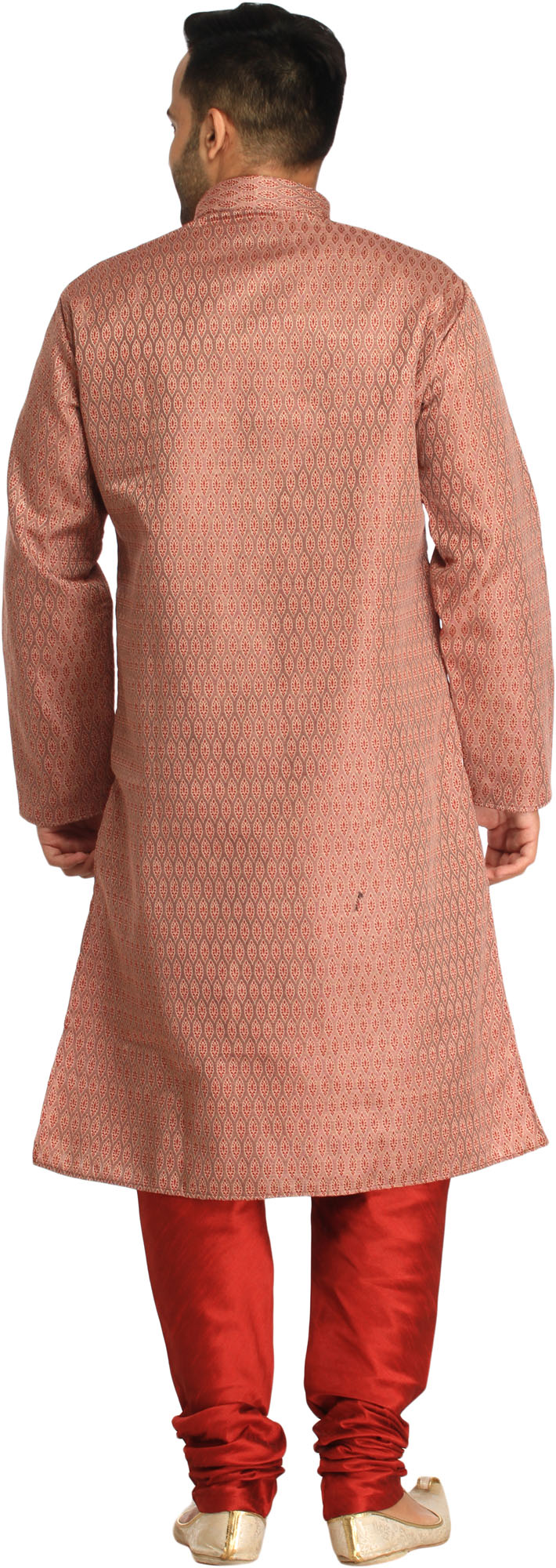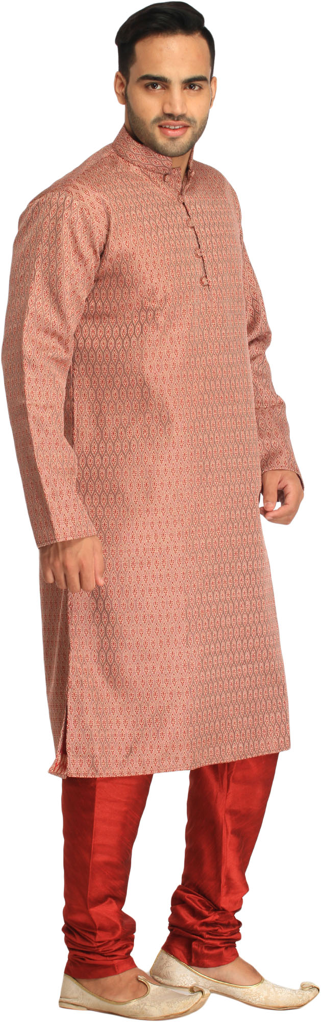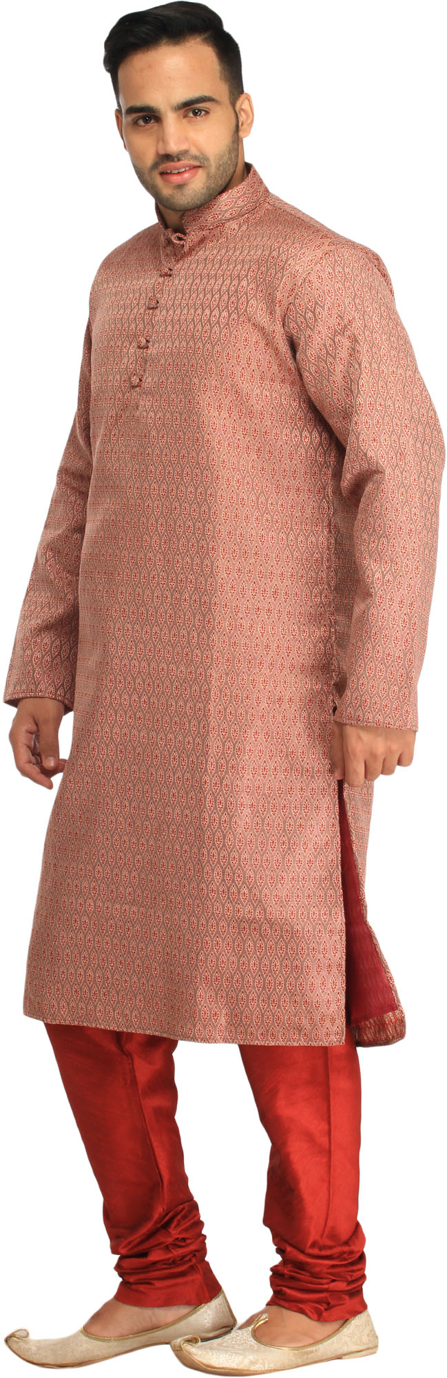 Enhance your look with this magnificent “Wedding Banarasi Kurta Pajama Set,” which has artistically woven bootis all over. This ensemble, made from art silk, harmoniously combines heritage and contemporary charm. The majestic Banarasi weave represents eternal tradition, while the woven bootis create an aura of richness. This outfit, designed for comfort and flair, is ideal for those who value the depth of cultural aesthetics.