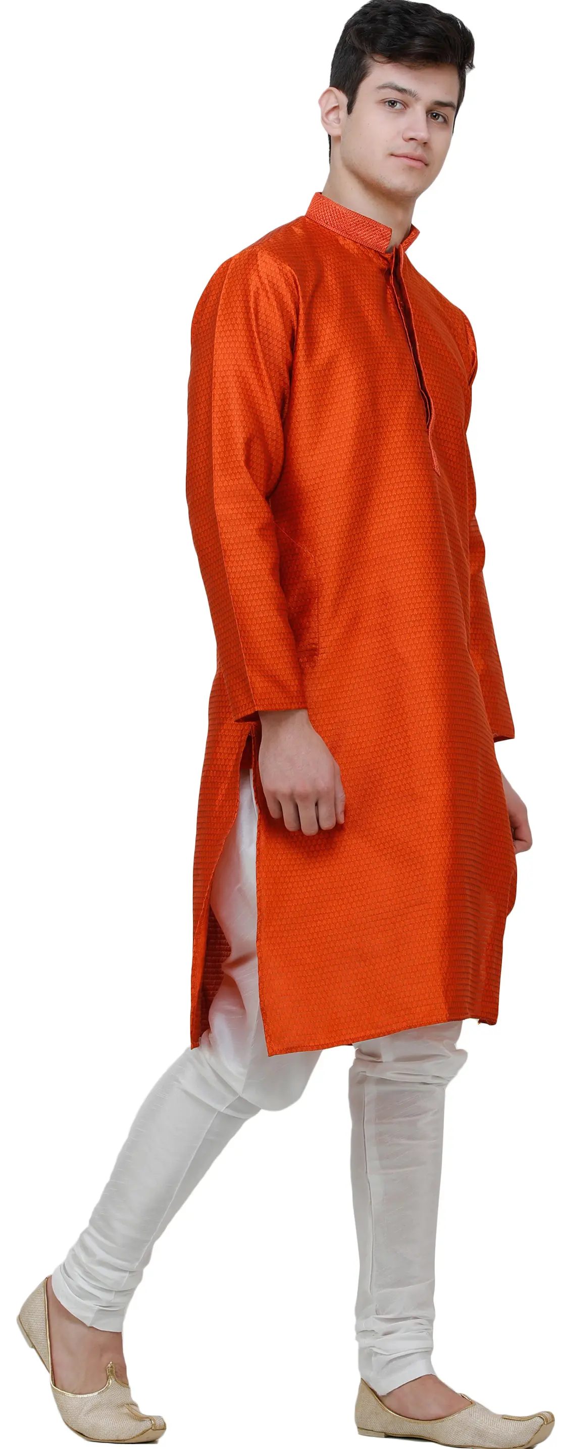 Indulge in the timeless charm of this Wedding Kurta Pajama Set, where traditional elegance meets contemporary design. The ensemble features an intricately embroidered collar that adds a regal touch to the kurta. The jacquard woven paan leaves further enhance the sophistication, creating a harmonious blend of classic and modern aesthetics. Perfect for wedding celebrations, this set exudes grace and cultural richness. Let the finely crafted details and luxurious fabric make you stand out on your special day, making it a celebration of style and tradition.