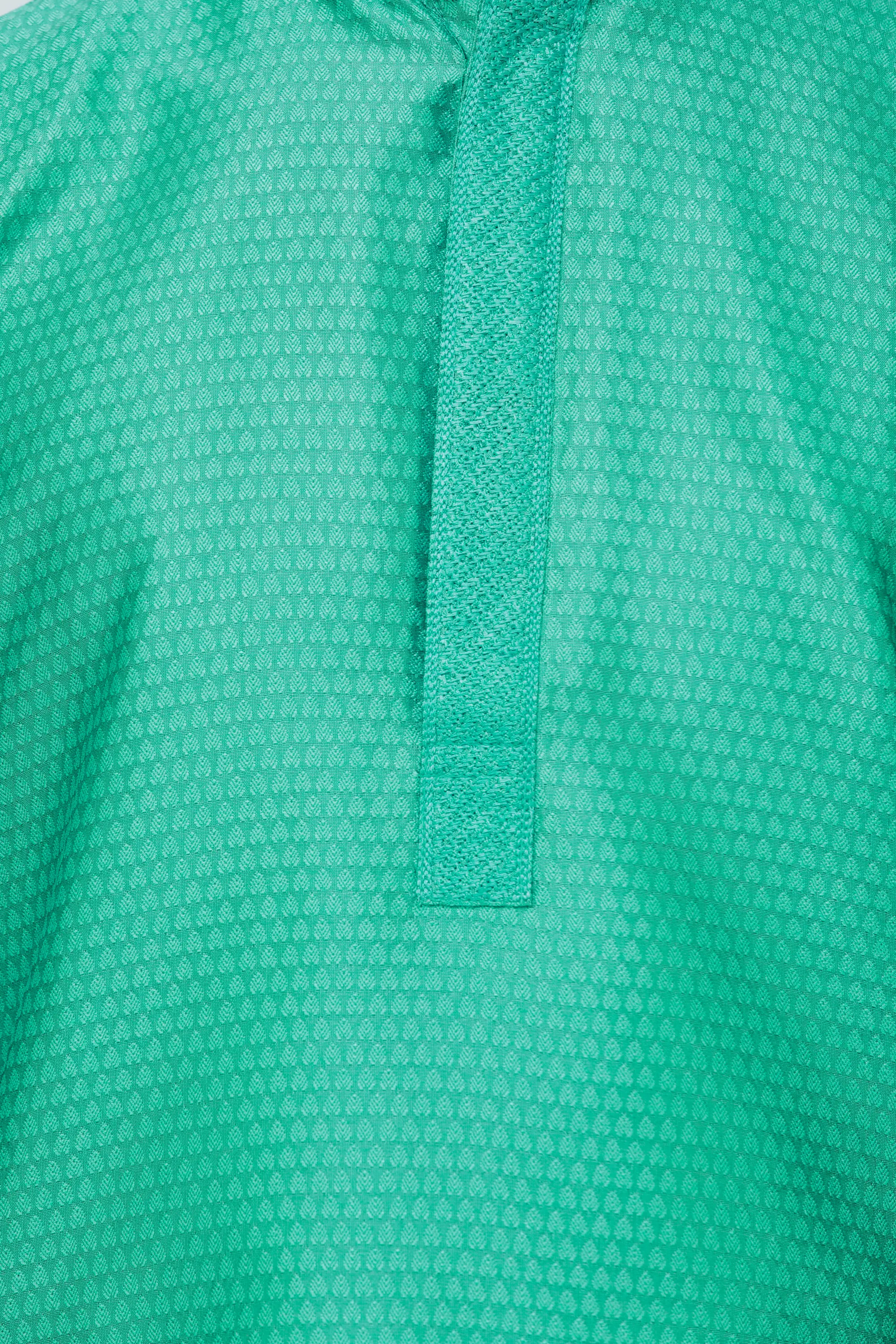 Indulge in the timeless charm of this Wedding Kurta Pajama Set, where traditional elegance meets contemporary design. The ensemble features an intricately embroidered collar that adds a regal touch to the kurta. The jacquard woven paan leaves further enhance the sophistication, creating a harmonious blend of classic and modern aesthetics. Perfect for wedding celebrations, this set exudes grace and cultural richness. Let the finely crafted details and luxurious fabric make you stand out on your special day, making it a celebration of style and tradition.