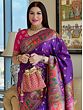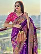 The border displays arched spaces with dancers in each frame and rows of tiny paisleys in eye-catching colors. The bliss of Dandiya infused in every thread, this silk saree is an Indian festive wear that is sure to turn heads.