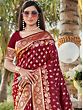 Party Wear Vichitra Silk Saree With Gold Zari Work On Border And Motifs All-Over