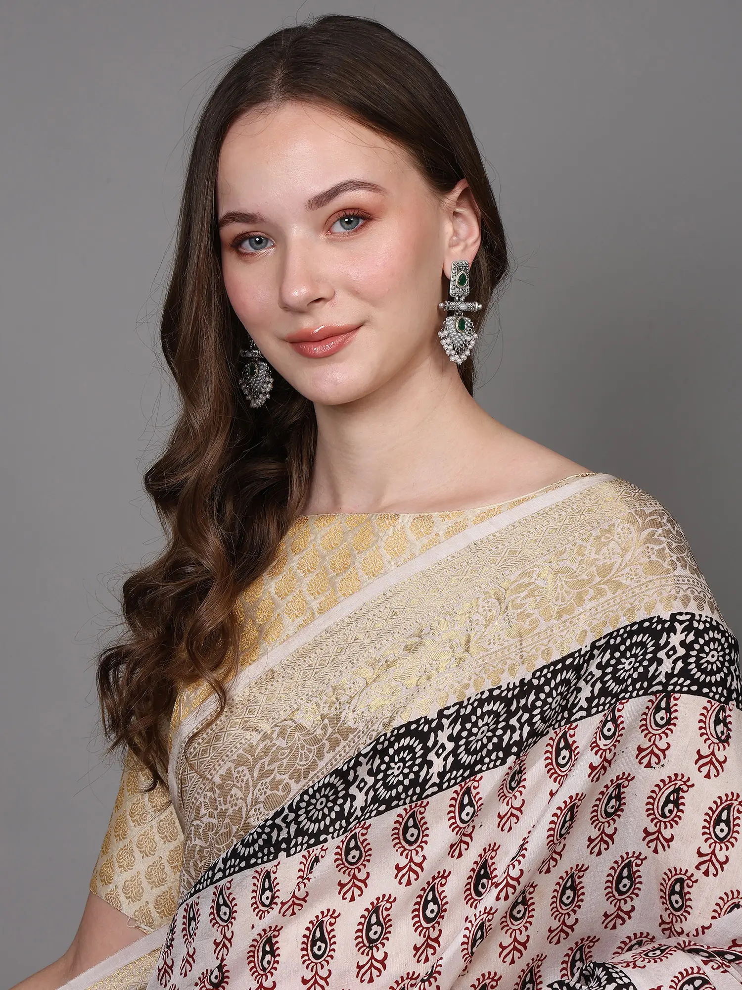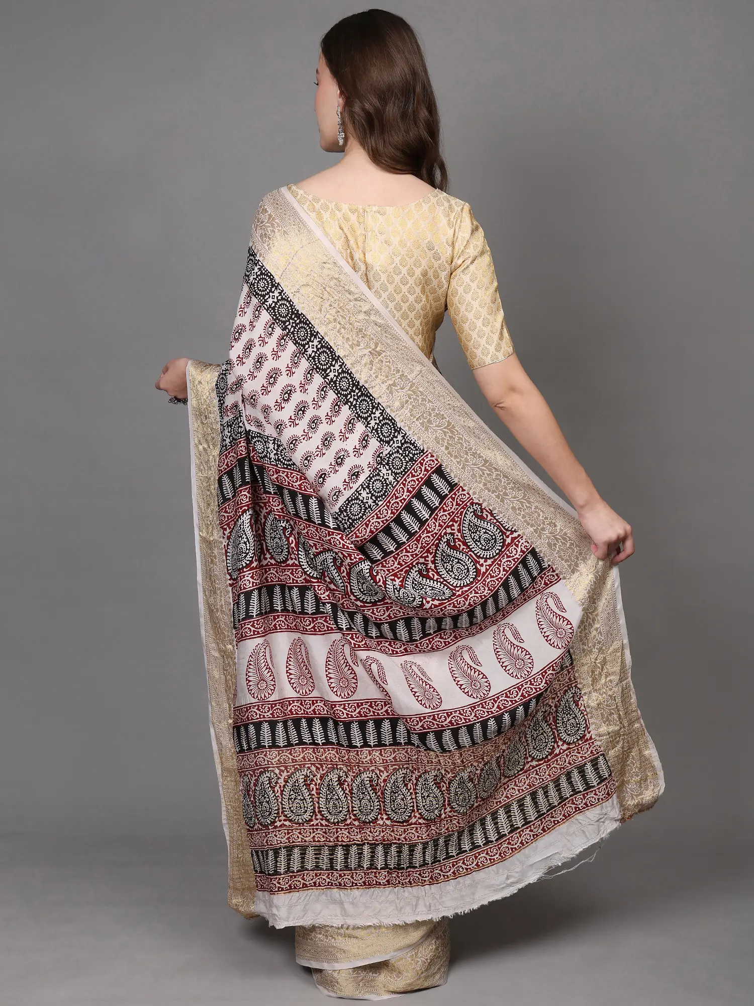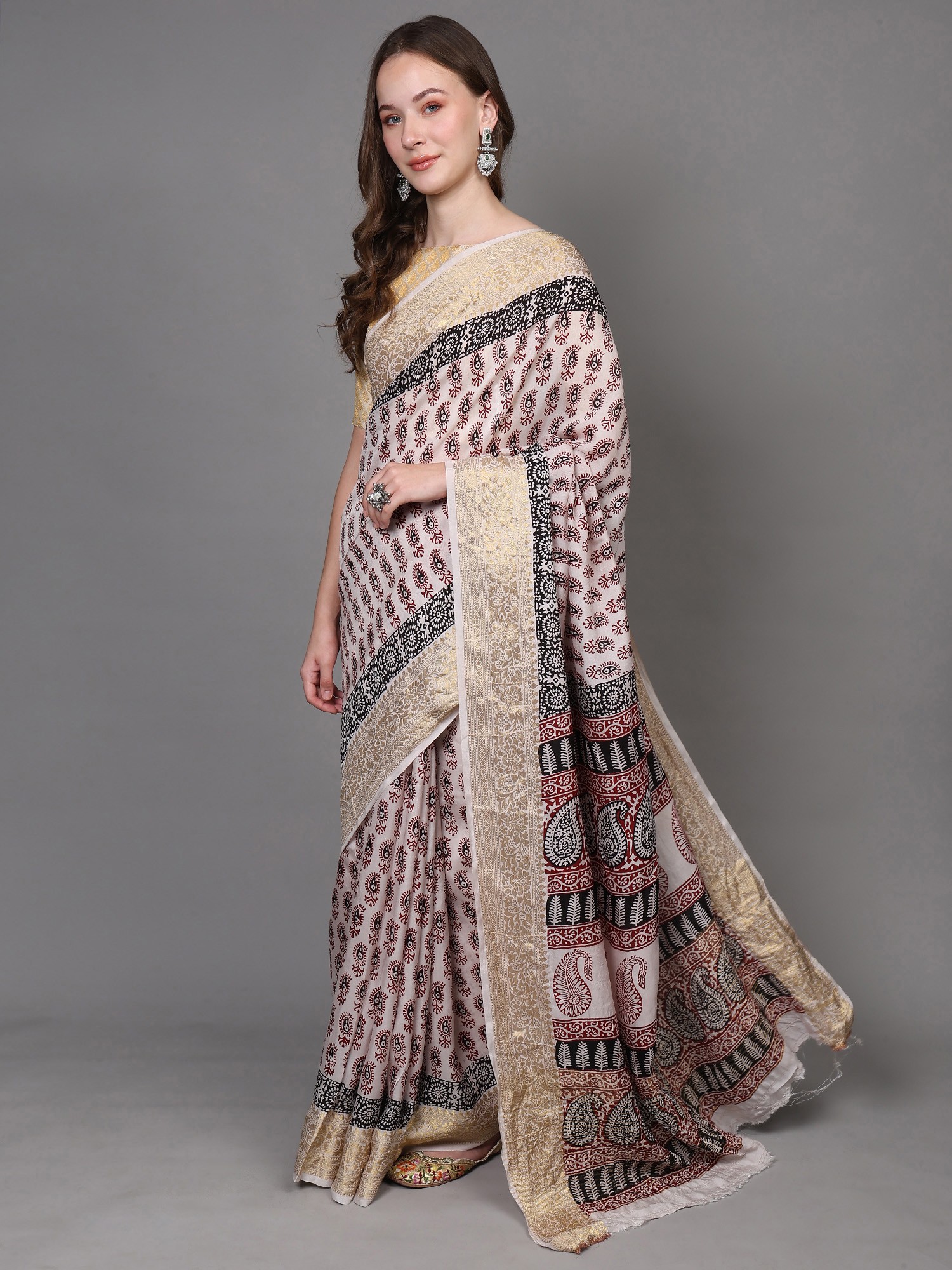Lichi Silk All Over Paisleys Motifs Festive Wear Saree With Blouse