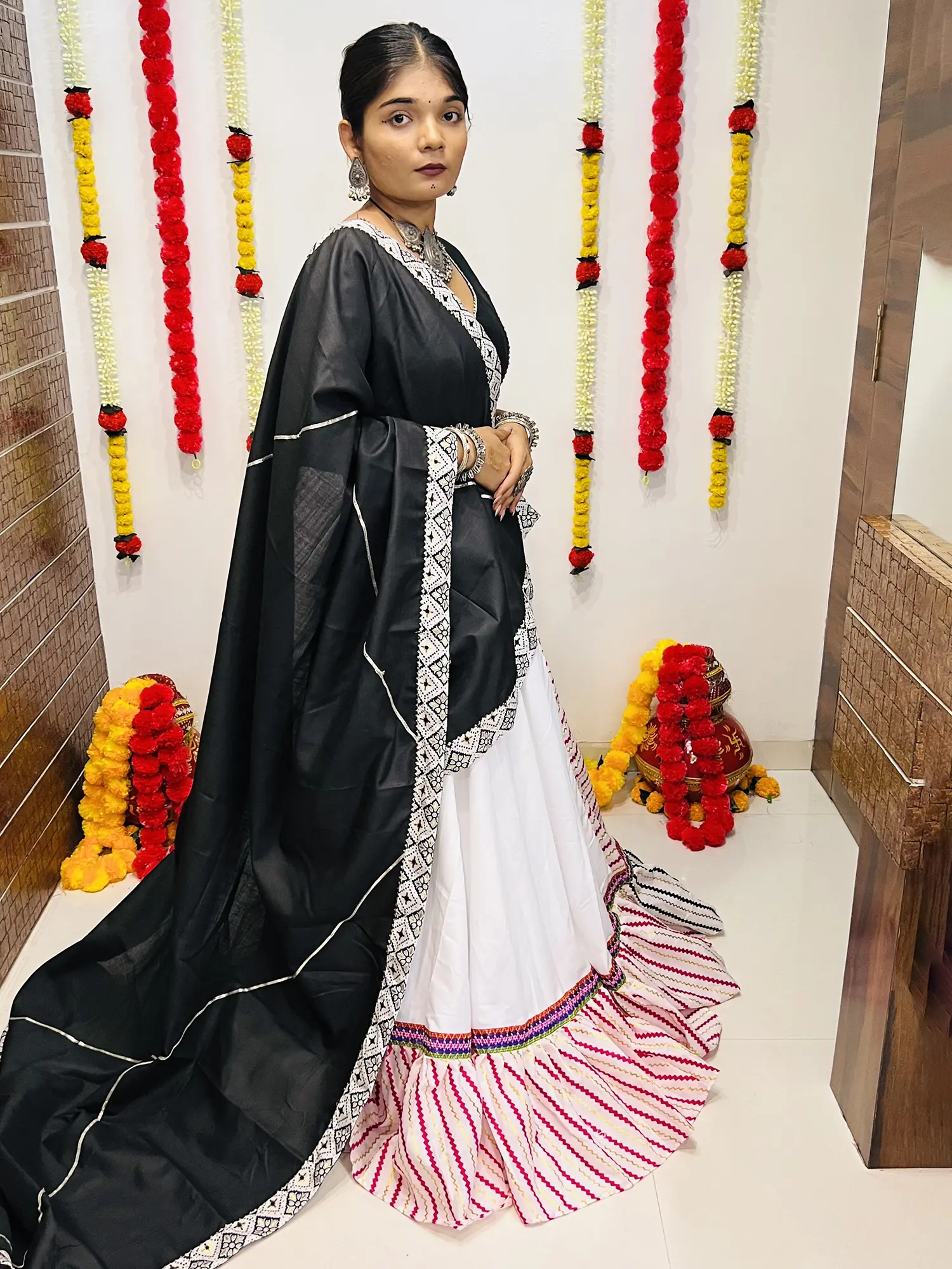 Multi-Colored Lehenga Choli from Rajasthan with Embroidered Flowers and Dori