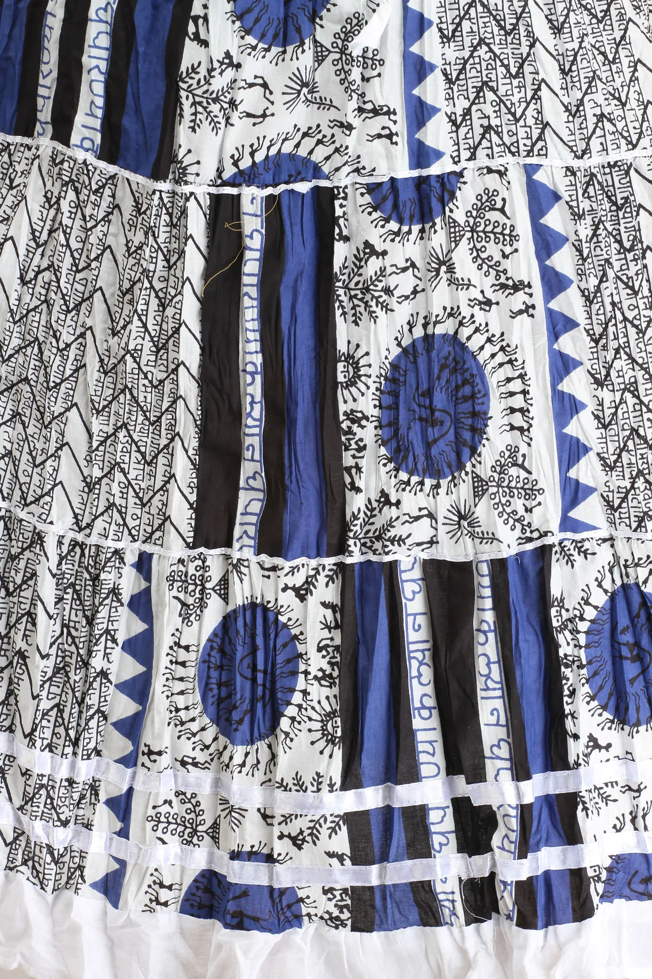 Embellished with sacred mantras of “Sanatan Dharma,” each whispering a tale of ancient wisdom, this skirt transcends fashion, becoming a conduit of spiritual connection. Designed from pure cotton, this midi skirt embraces you with comfort while resonating with profound richness.