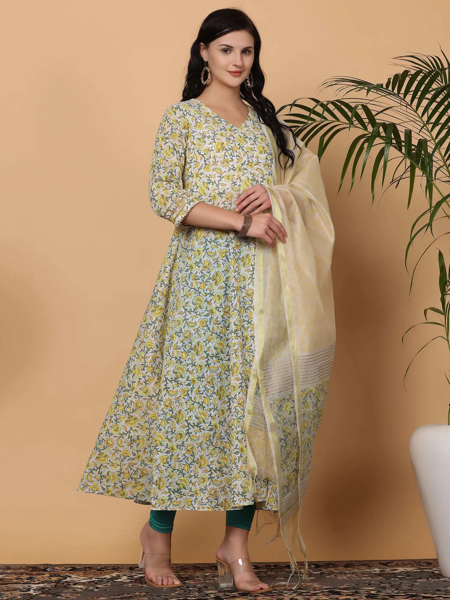 Cayenne Floor-Length A-Line Suit with Floral Aari Embroidery and Printed Dupatta