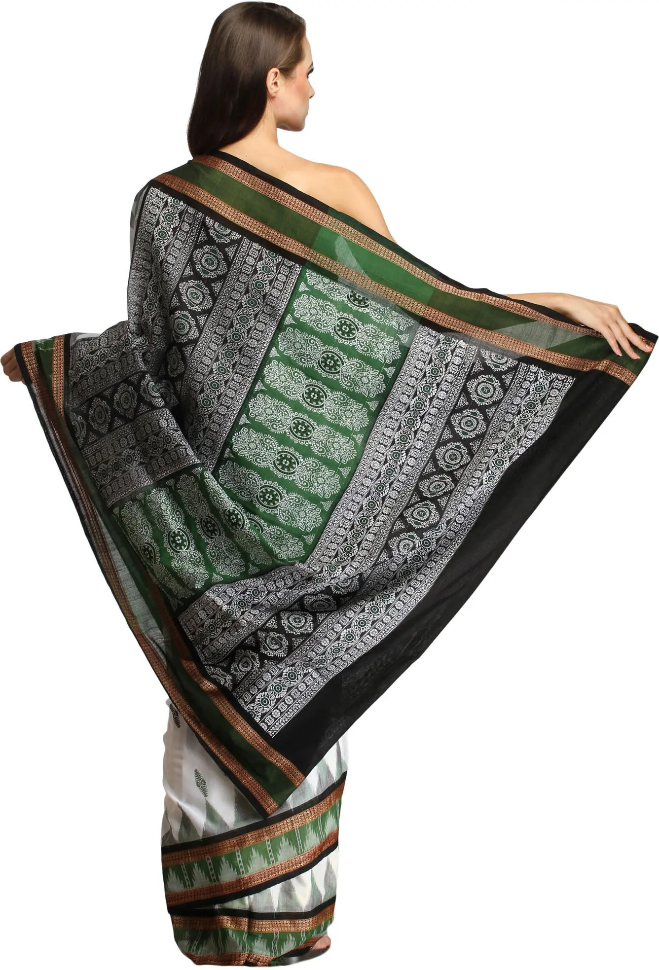 Pure Cotton Sambhalpuri Saree with Ikat Woven Pallu and Temple Border