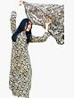 Long Printed Salwar Kameez with Crewel Embroidered Flowers on Neck and Faux Pearls