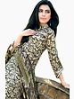 Gray and Black Trouser Salwar Kameez Suit with Digital Print and Embroidered Flowers