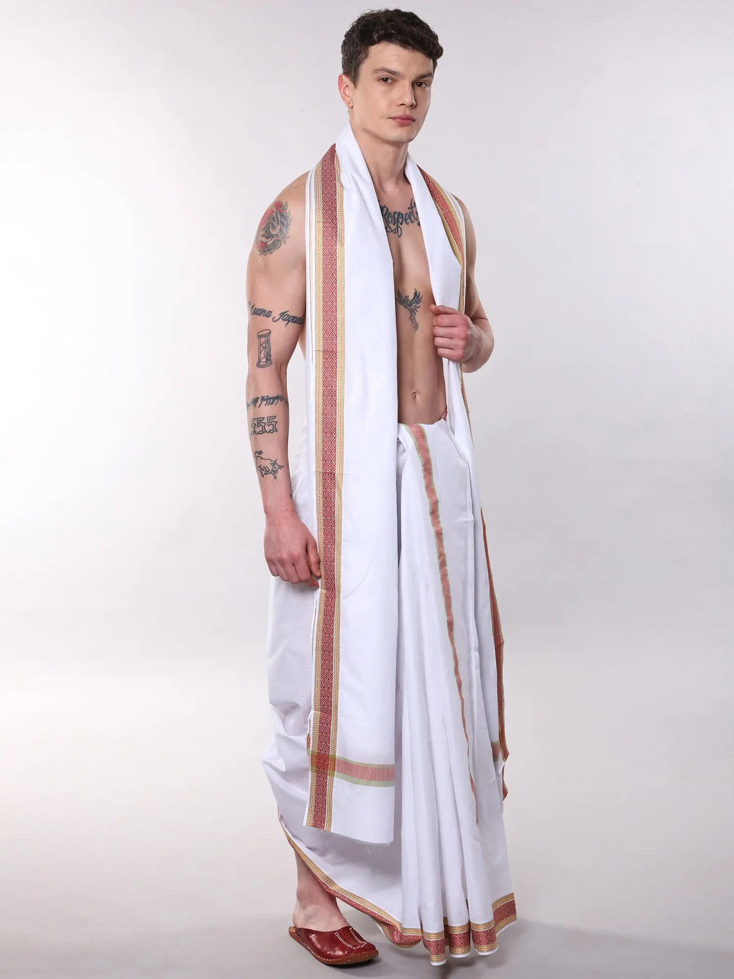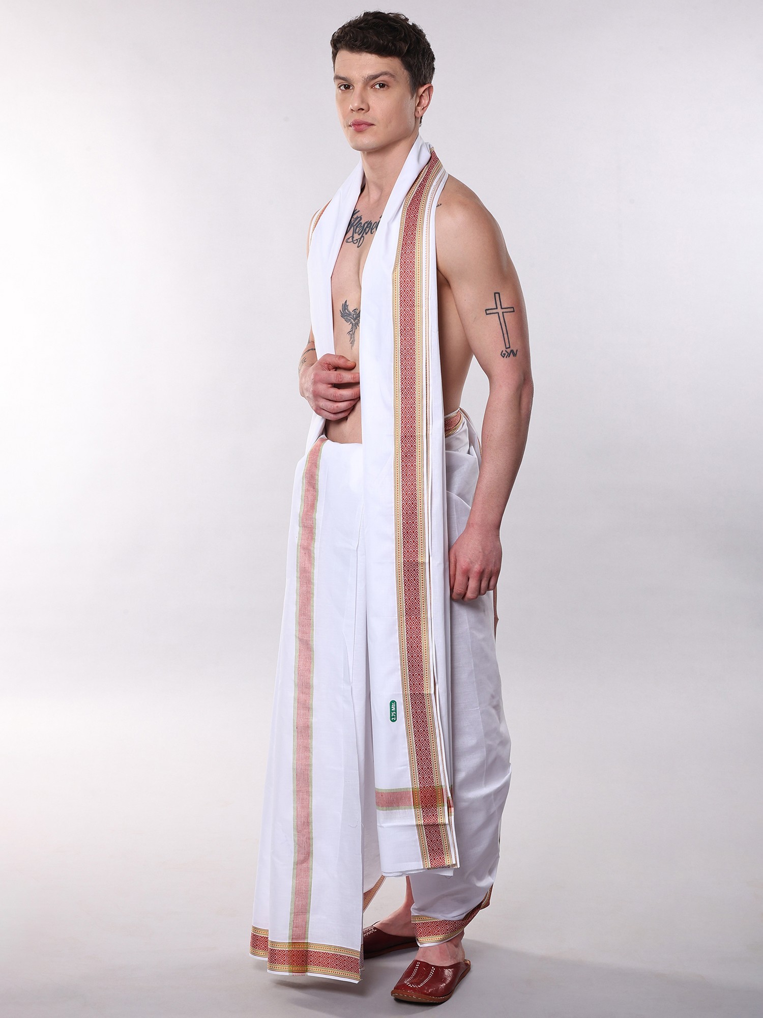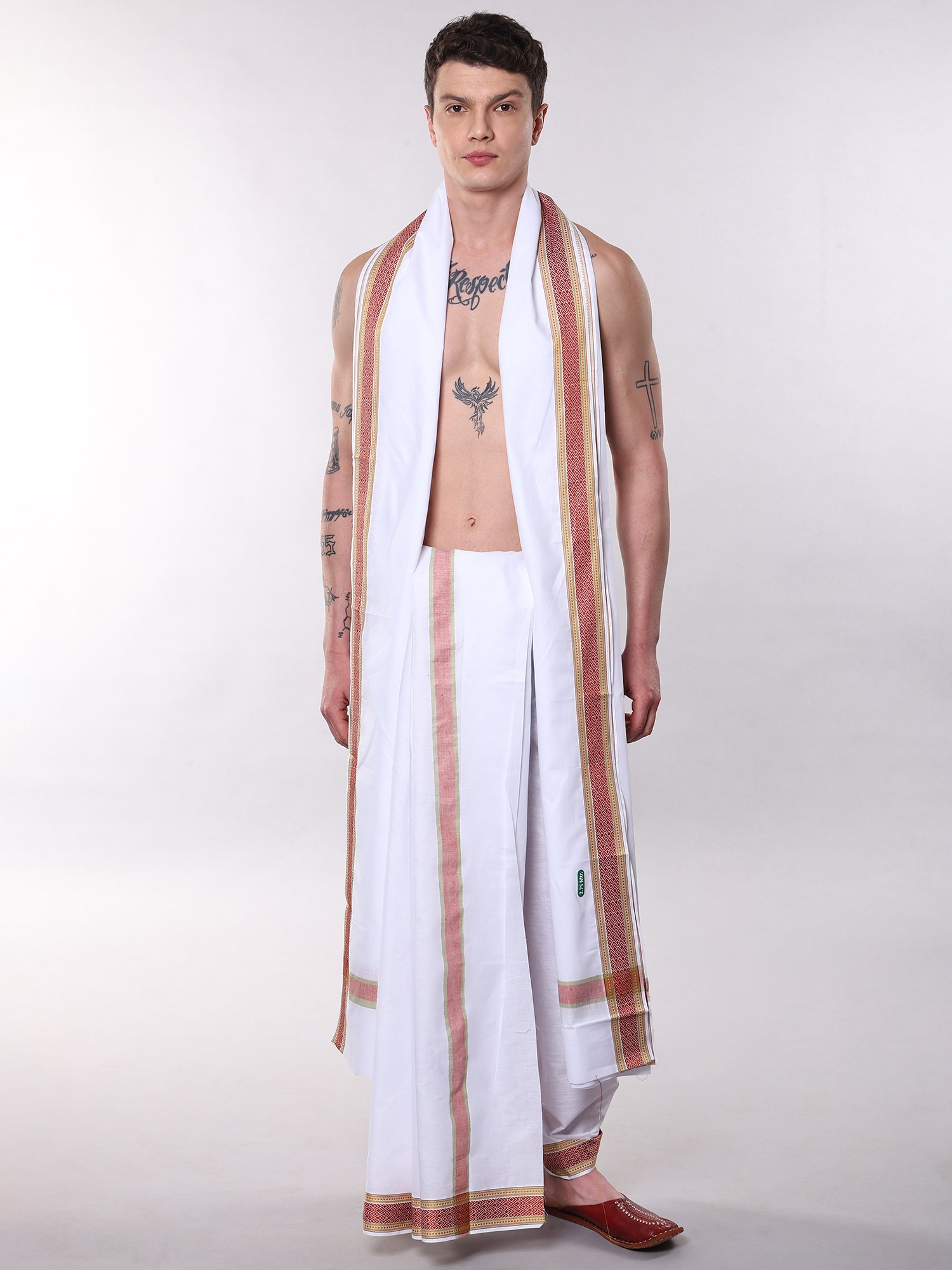 Dhoti: Length 170 Inch X Width 50 Inch, Angavastram: Length 118 Inch X Width 50 Inch