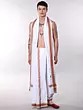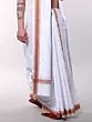 White Cotton Dhoti and Angavastram Set with Multi Thread Woven Border