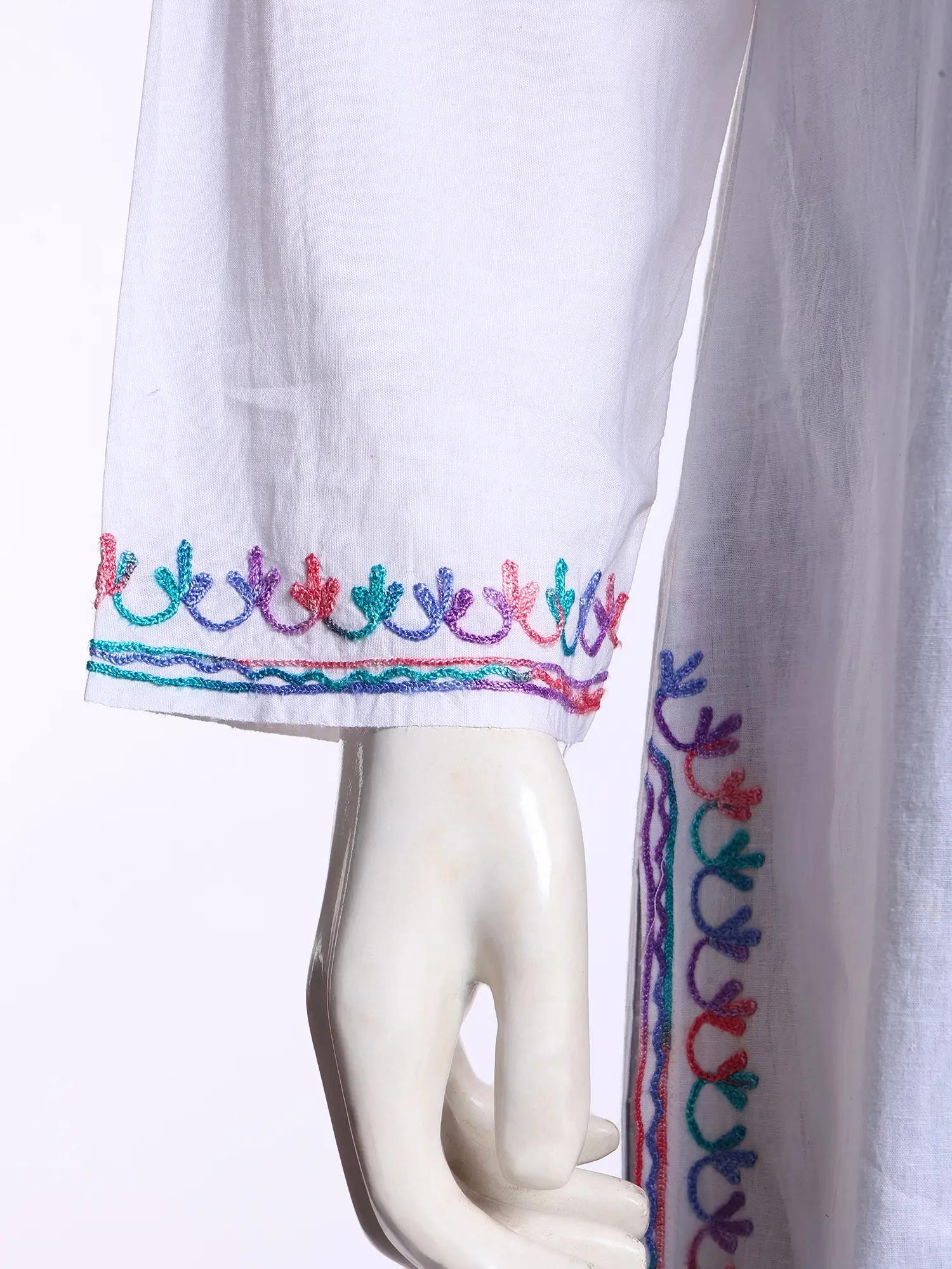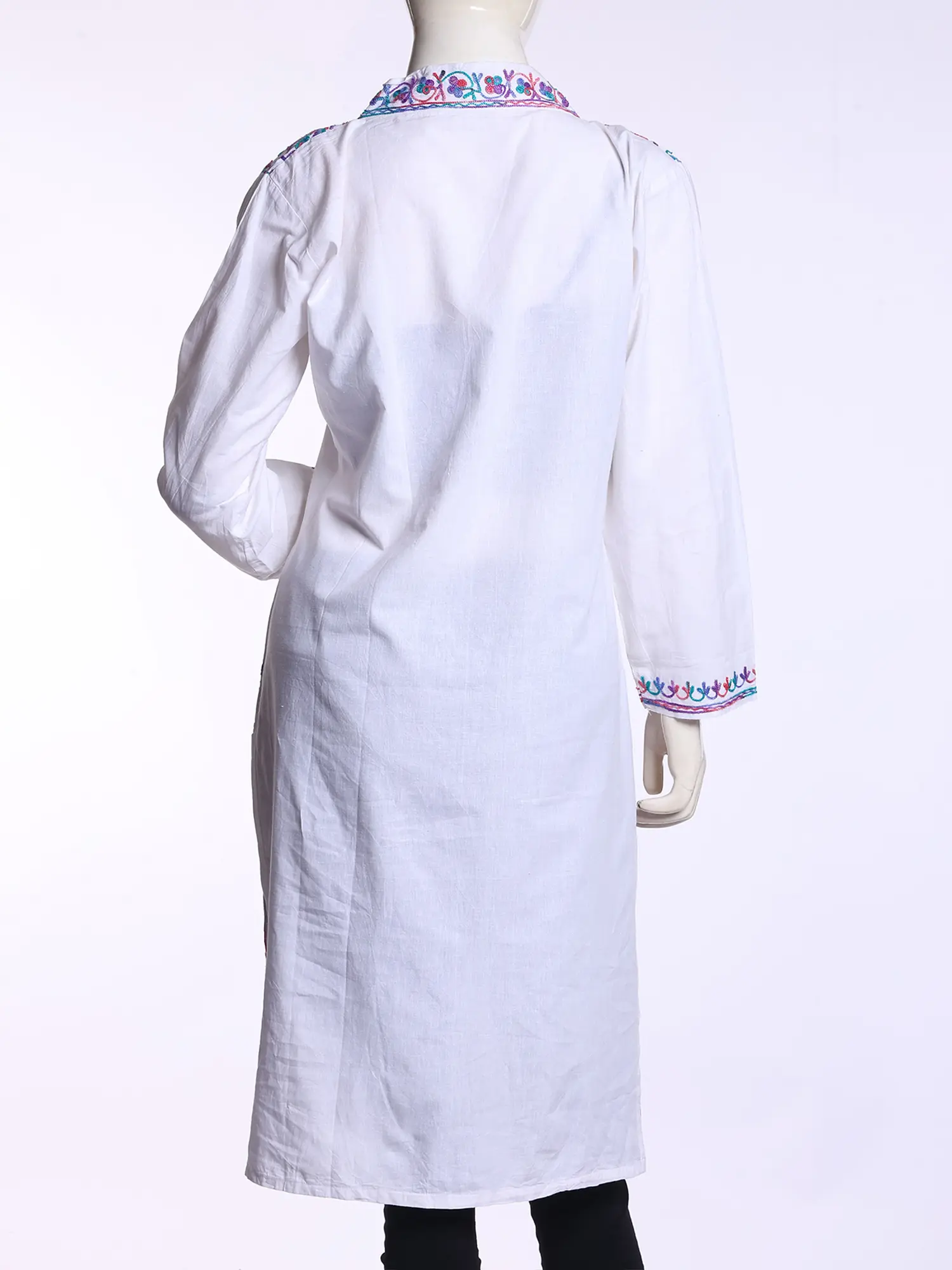 Floral Chikankari Embroidered White Cotton Kurti for Women