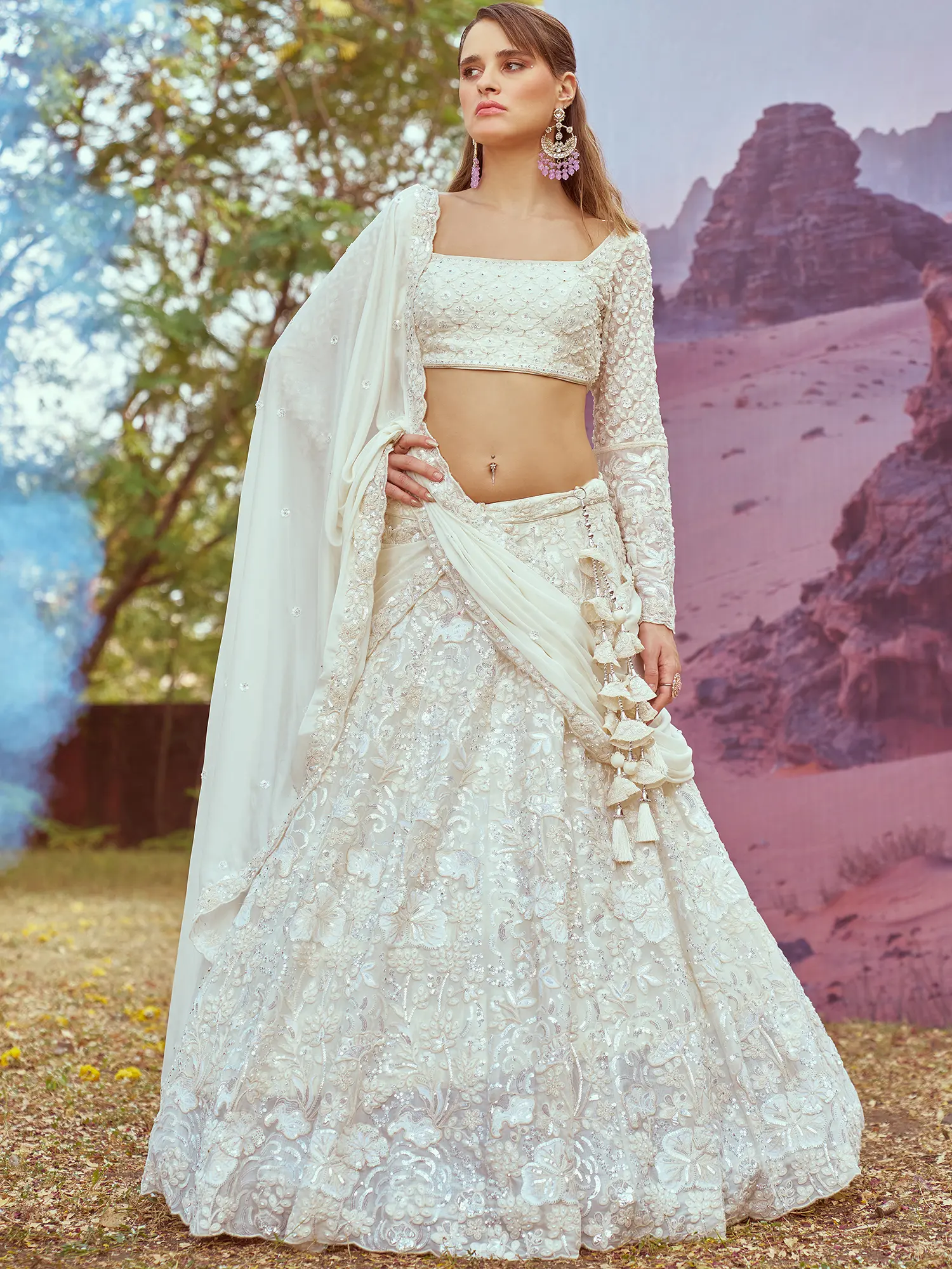 Imagine the soft glow of a wedding reception illuminating the intricate beadwork, or the joyous energy of an engagement ceremony as you twirl in its voluminous skirt. This ensemble is ideal for making unforgettable entrances at grand celebrations, intimate ceremonies, and any event where you wish to embody unparalleled elegance. It’s a statement piece that speaks volumes about your personal style and appreciation for fine craftsmanship.