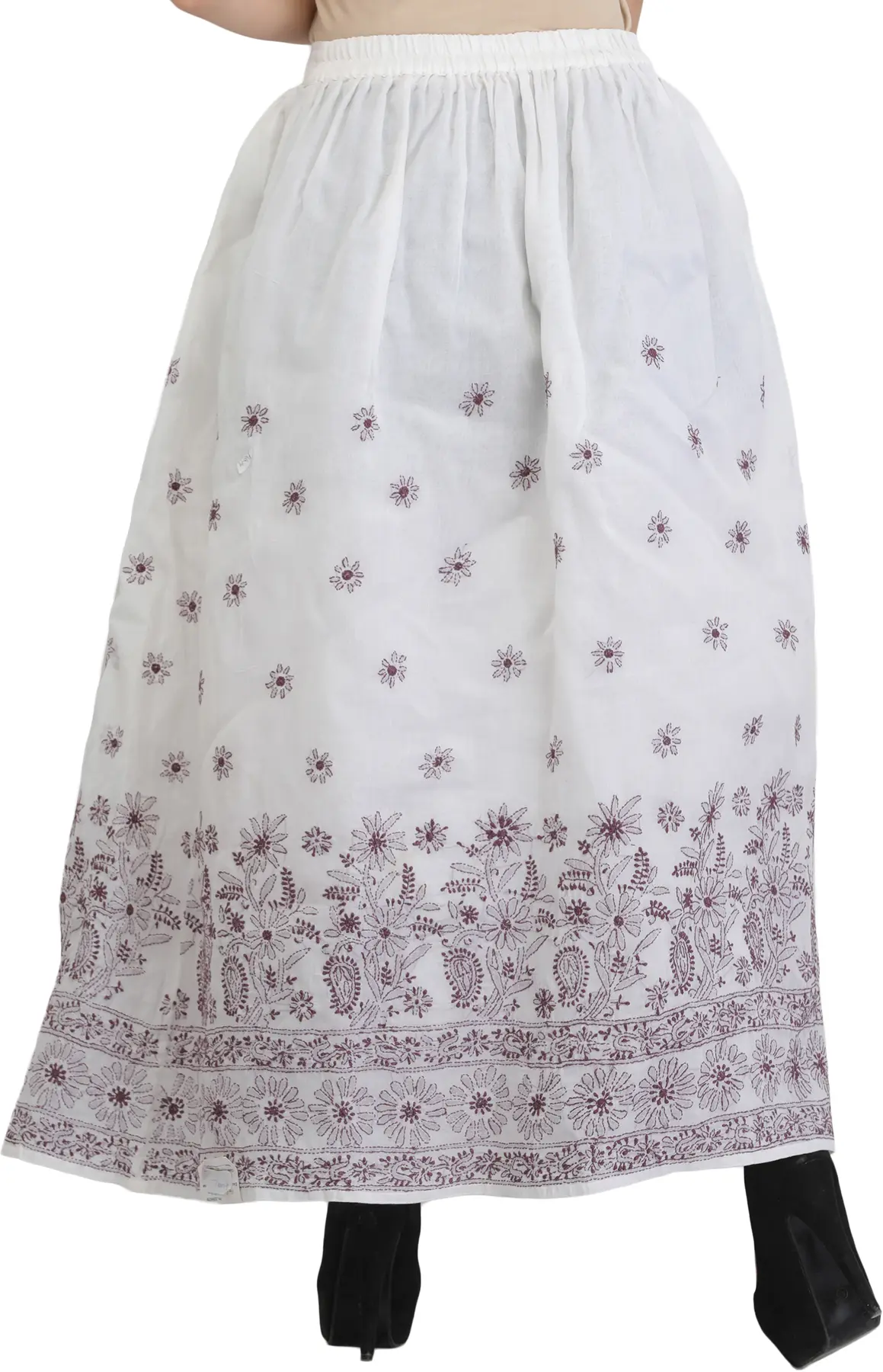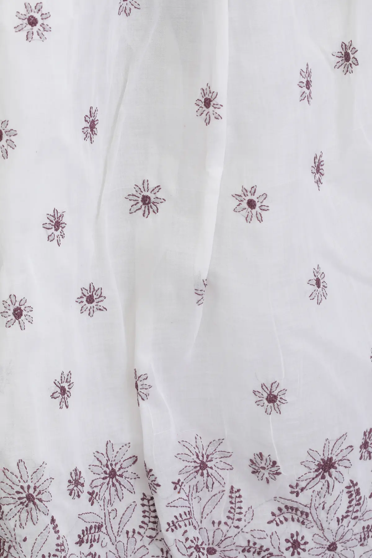 White Fabric with Fabric with Lucknowi Chikan Embroidery in Salmon Thread
