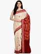Tribal Motifs Bomkai Saree with Temple Border from Odisha and Contrast Border and Anchal