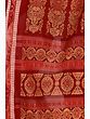 Tawny-Port Pure Cotton Ikat Handloom Saree from Sambhalpur with Woven Fish-Peacocks Wide Border