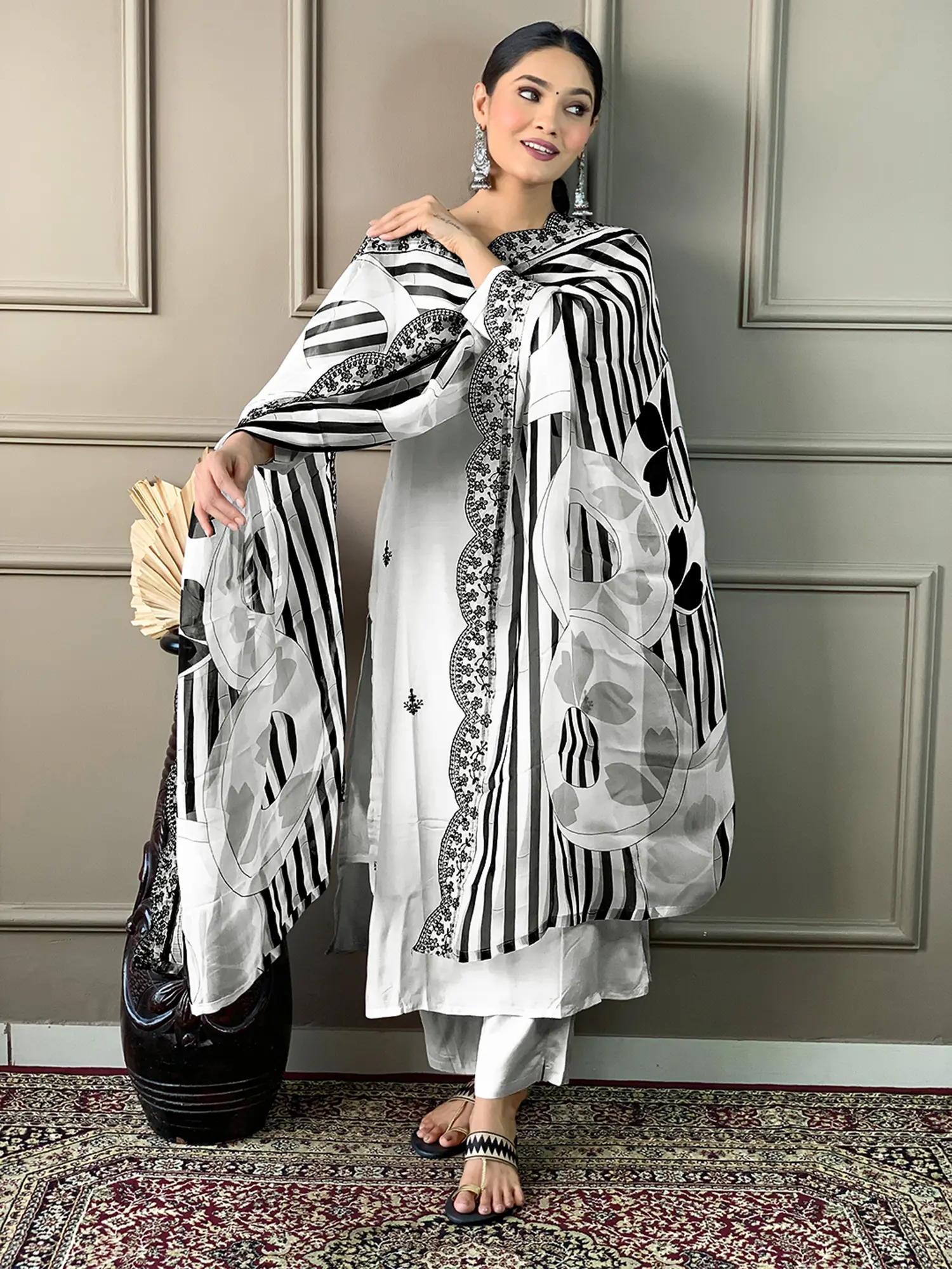 Elegant Zari Embroidery Viscose Silk Festive Wear Kurta Set With Matching Dupatta