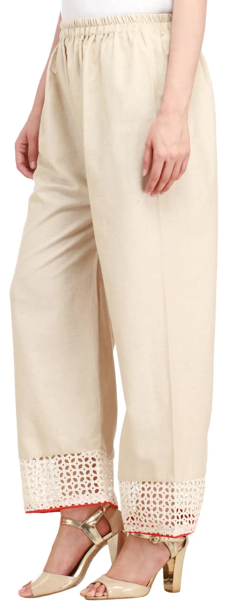 This Whitecap-Gray Handspun Cotton Trousers with Cutwork on the Border offer both comfort and style, making them ideal for the Indian summers. Made with handspun cotton, these trousers ensure breathability and softness, keeping you cool and comfortable in the heat. The cutwork detailing on the border adds a touch of elegance and sophistication, elevating the trousers from basic to chic.