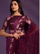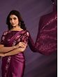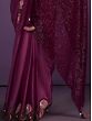 Wine Berry Crepe Satin Silk Embroidered Saree And Rose Motif In Border With Stitched Blouse