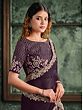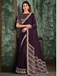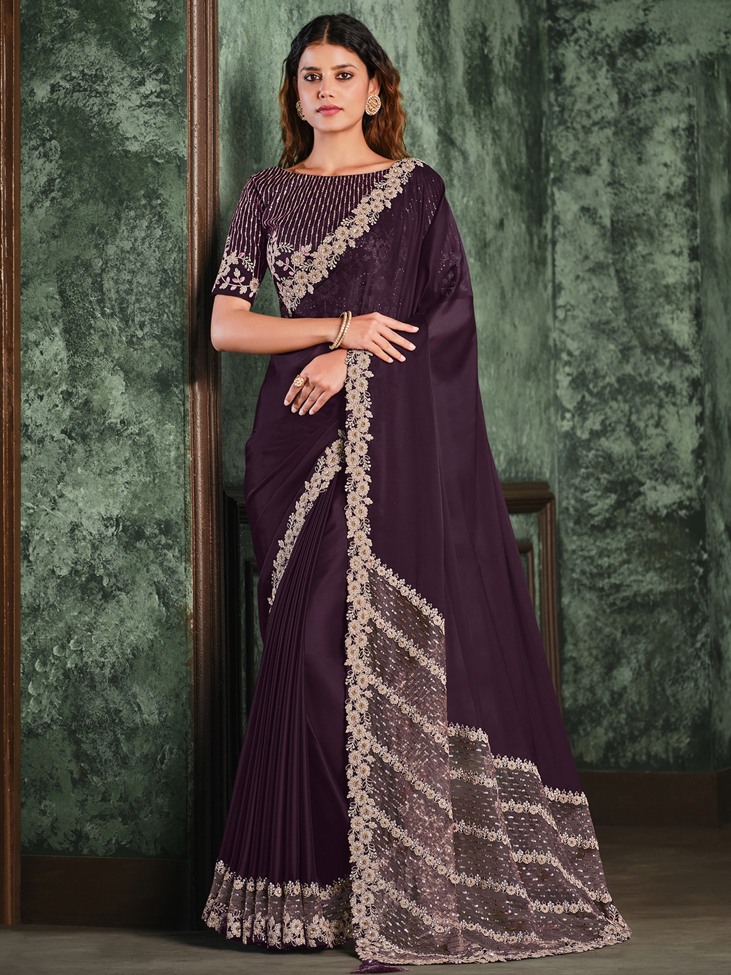 Wine Silk Georgette Zari And Cord Embroidery Party Wear Saree With Blouse