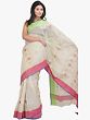 CornStalk Chanderi Sari from Madhya Pradesh with Zari-Woven Border and Bootis